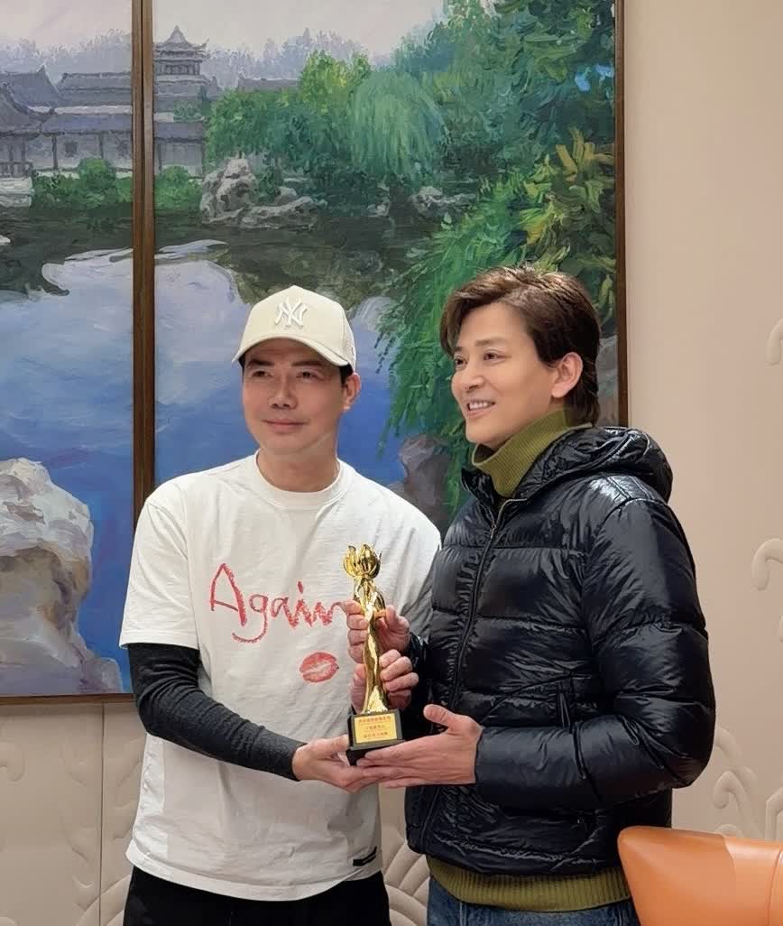 香港文匯報訊(記者 子棠)陳曉東(東東)早前憑電影《騙我一輩子》榮獲「2025第四屆香港電影紫荊花國際電影節」主競賽單元的「最佳男主角獎」,電影出品人和導演特意把獎項拿到香港交給東東,當他可以親手拿着獎項時表示很不可思議,也感謝評委對他的厚愛與所有幕前幕後工作人員的努力和成全。今年是東東入行30周年,他說這個獎項絕對是最佳禮物。適逢謝天華也憑《騙我一輩子》榮獲「2025澳門國際電影節」金蓮花獎「最佳男配角」,他倆特別相約電影出品人和導演共進晚餐,一起這次非常特別的雙喜臨門。