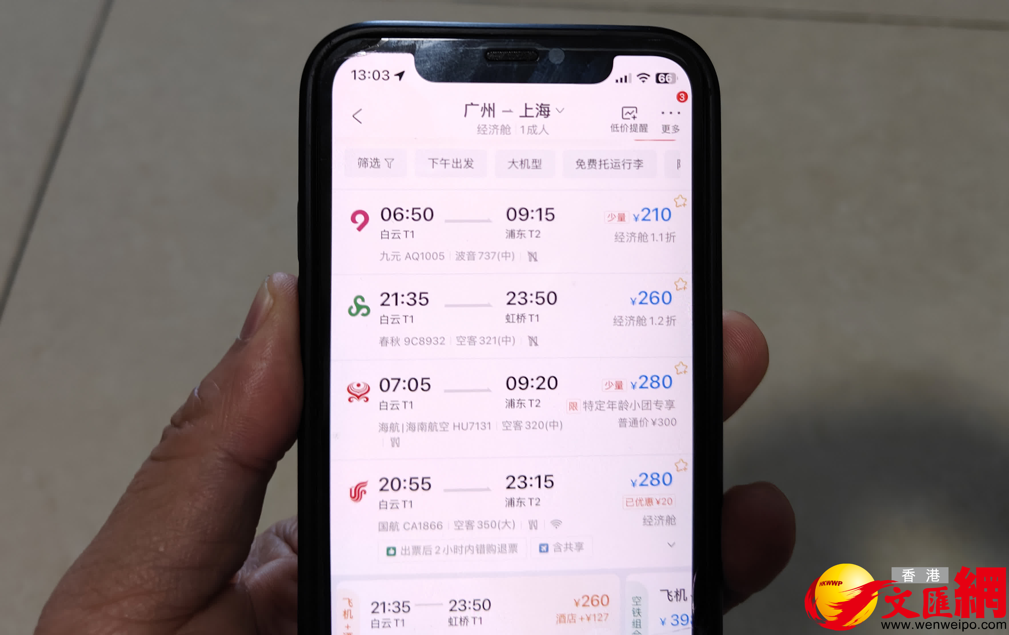 (香港文匯網記者 方俊明)內地機票價格在元旦假期後迎來「大跳水」。記者8日從相關線上平台及航空公司獲悉,內地熱門旅遊城市單程機票最低僅需1折左右。例如1月9日到11日,廣州飛上海、北京的機票價低至1到1.5折,最低票價以210到409元(人民幣,下同)左右即可成行。「這是元旦假期之後錯峰出遊『撿漏』好時機,對於港澳居民北上出行也是一大利好。」南方航空有關人士表示,機票「低價窗口期」預計持續至2月初。