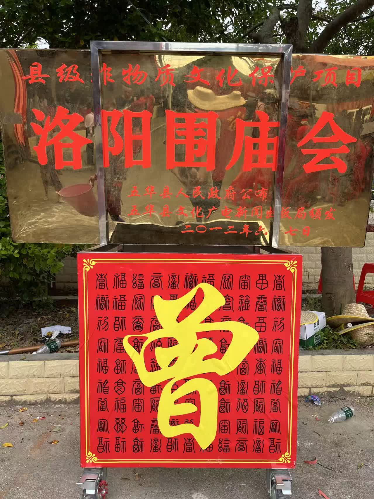 據廟會會長曾培方先生介紹,洛陽圍廟會持續逾300年,以民俗遊行表演的形式進行,曾子的後裔們充分發揮創意,編排別出心裁的文藝節目,題材既有民間傳說,也有現代前衛的潮流時尚。2012年洛陽圍廟會被批准為非物質文化遺產保護項目,得到了法律的保護。