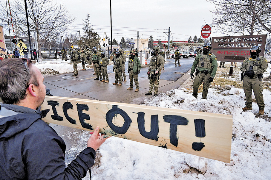 香港文匯報訊 美國移民及海關執法局(ICE)探員周三(1月7日)在明尼蘇達州行動期間,貿然連開數槍,打死一名37歲女性。國土安全部辯稱涉事女子企圖駕駛車輛衝撞探員,宣稱開槍是出於自衛,更將事件定性為「本土恐怖主義」。事發明尼阿波利斯市市長弗雷怒斥ICE濫權殺人,批評聯邦政府說法是一派胡言,要求ICE執法人員立即離開該州。