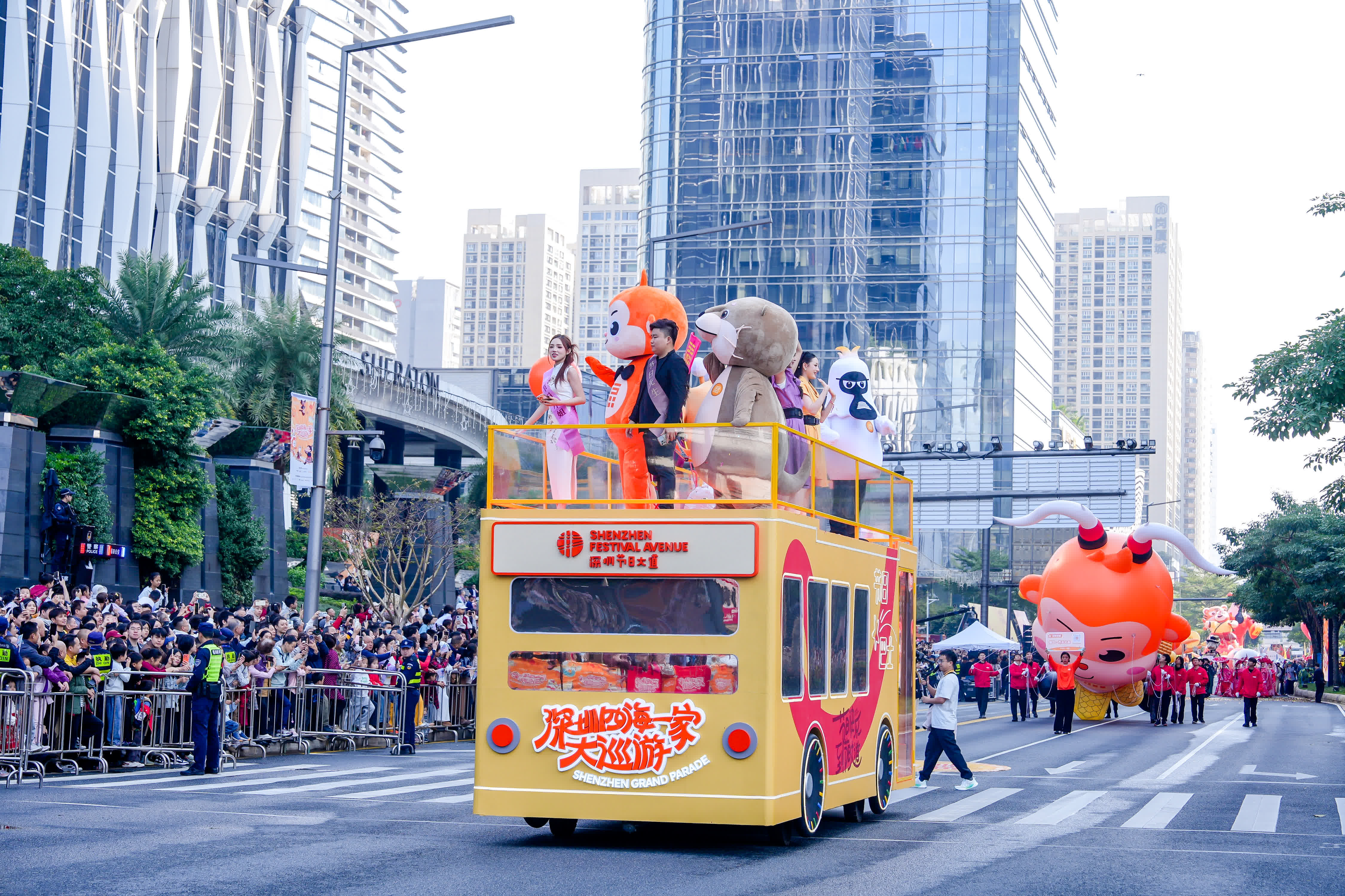 元旦期間,深圳市福田區第三次舉辦「四海一家」大巡遊活動,匯集2組創意歌舞、10組主題花車、21支文化方陣,1500餘名演職人員沿1.6公里城市主軸獻藝,吸引現場觀眾逾 16 萬人次,帶動周邊商圈客流量28.1萬人次,實現銷售額1942萬元。龍華區上河坊・港澳灣的「東北大集」通過趕大集、非遺演繹讓市民「秒穿東北」,觀瀾古墟將英歌舞與「雪景」融合,搭配書法篆刻展成為打卡熱門。寶安區的IP主題展同樣吸睛,前海壹方城同步亮相AI魔法拍照、泡泡瑪特及《鬼滅之刃》等七大IP主題展,歡樂港灣則以「騎遇未境」光影劇場、128 米「灣區之光」摩天輪下的發光旋轉木馬,構建起夢幻夜景,成為親子家庭首選目的地。