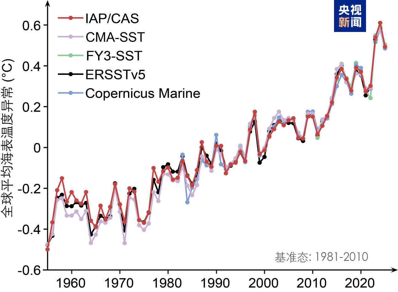 海洋吸收了人類活動引起的地球系統增暖中超過90%的熱量,因此,海洋熱含量被認為是衡量全球變暖最穩定、最可靠的指標之一。2025年全球上層2000米海洋熱含量再度創下歷史新高,延續了近九年來逐年破紀錄的態勢。據中國科學院大氣物理研究所數據顯示,2025年上層2000米海洋熱含量比2024年增加的熱量相當於約37年的全球能源消耗總量。來自意大利、美國、歐盟的3套國際數據集結果均顯示出一致的海洋增暖態勢。