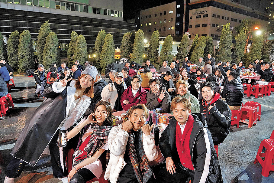 香港文匯報訊(記者 達里)TVB前晚舉行職藝員新春盆菜宴,在電視城停車場筵開100席,有160位藝人和1,000位公司同事一起品嘗盆菜。行政主席許濤更於台上宣布加人工好消息,表示會跟去年一樣論功行賞、多勞多得,同事們的付出,公司是會看得到。而近日宣布辭任總經理一職的曾志偉就未有參與盆菜宴。兩年前完成拍攝的《非常檢控觀》今年終於播出,男主角馬德鐘開心由「叫胡」變「食胡」,女主角陳煒則對劇集收視充滿信心。