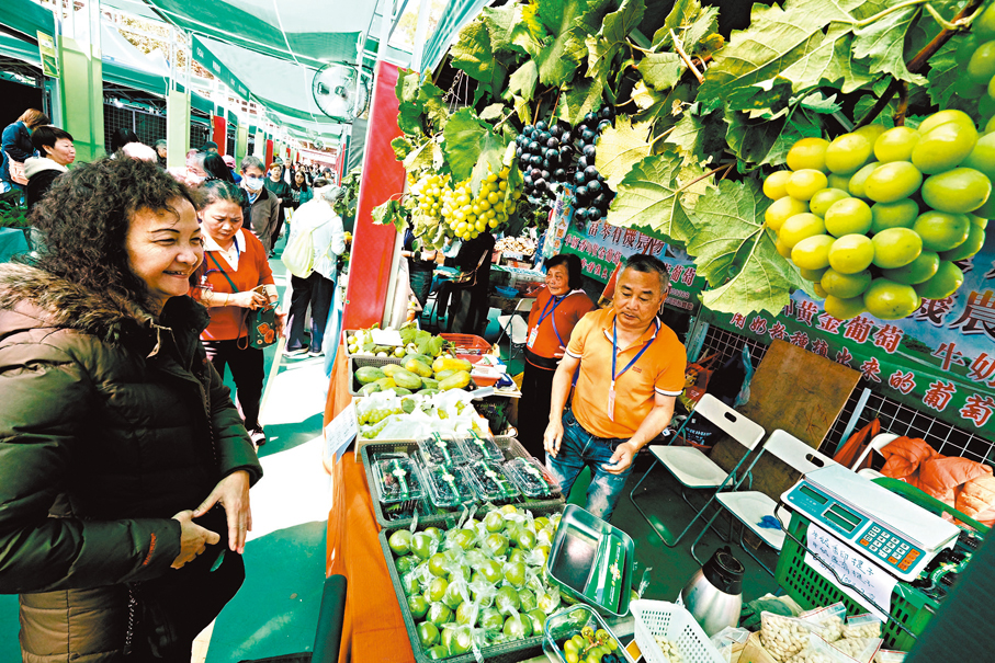 香港文匯報訊(記者 崔瀅)2026本地漁農美食嘉年華由昨日起至11日一連三日在旺角花墟公園舉行,展銷多種本地漁農產品及其他貨品。適逢活動舉辦20周年,現場共設超430個展銷攤位,其中超220個攤位售賣本地出產的漁農產品。場內亦有多個攤位售賣本地美食、有機和健康食品及家居用品。市民參與各種互動遊戲,還可以換取購物優惠。有市民在展區花費超千元購買蠔及本地蔬菜。