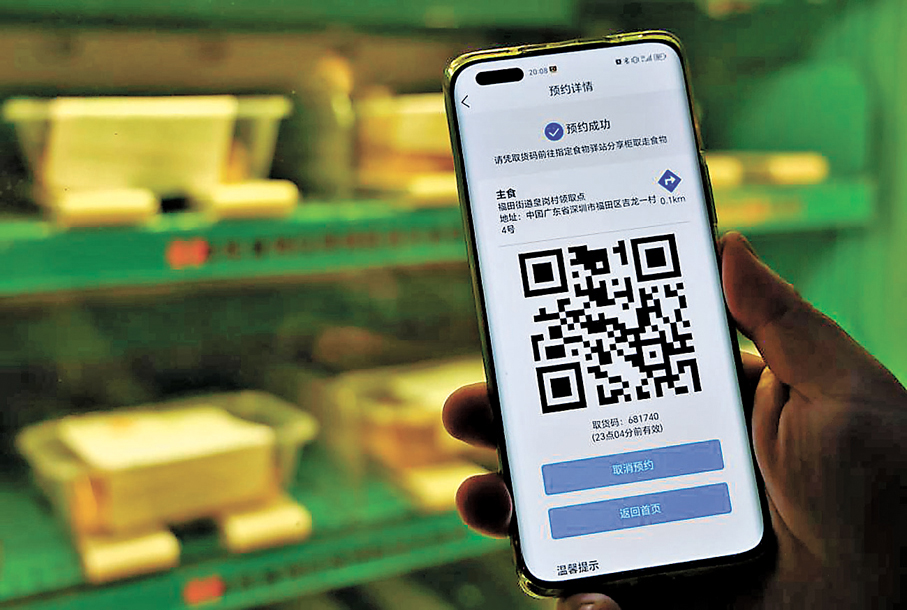 晚上10點半,深圳永輝超市卓悅匯店的卜俊毅店長清點了店裏沒有賣完的麵包、青菜種類與數量,發到了捐贈對接群中。第二天早上7點,志願者李哥來到永輝超市,將分配好數量的麵包進行檢查、包裝,「存」入了位於卓悅匯北廣場的智能櫃機中。7點半,深圳市民劉叔在手機上預約成功後,來到櫃機面前順利「取」走了自己的這份早餐。一「存」一「取」之間,這份免費的善意便從企業傳遞到了市民的手中。