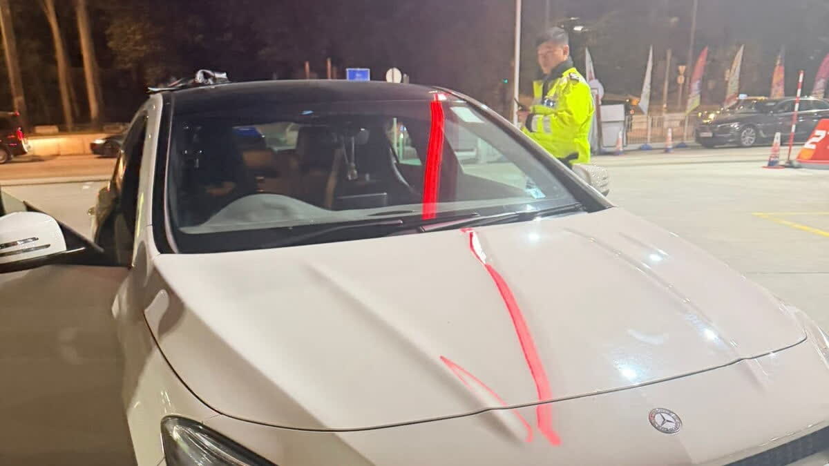 警方昨晚約11時在新界八鄉一個油站截停一輛可疑私家車,搜查車上兩名分別40及41歲男子,在他們身上及車廂內檢獲9粒含有依托咪酯的電子煙彈、0.7克冰毒、一批吸毒工具、三粒俗稱「偉哥」的第一部危險藥物,以及一對假車牌。兩名涉事男子被捕,現正扣留調查。