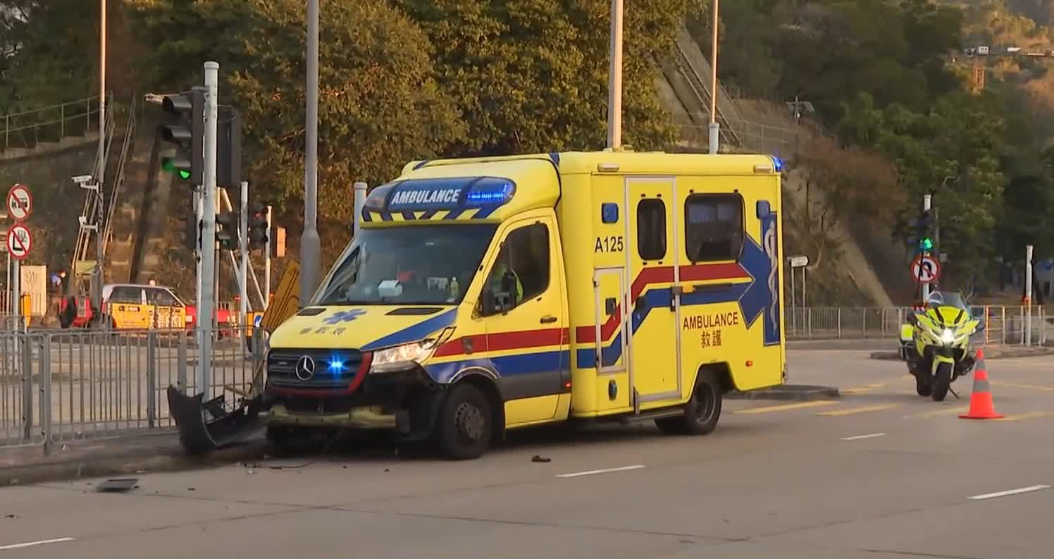 香港文匯報訊(記者 蕭景源)今日(11日)早上7時許,一輛接載不適病人送往醫院救護車駛經竹園道與聯合道交界時,與一輛失控貨車發生碰撞,救護車被撞致失控衝向路中安全島撼向圍欄,救護車車頭損毀及輪胎變形,碎片散落一地,幸未有釀成受傷。