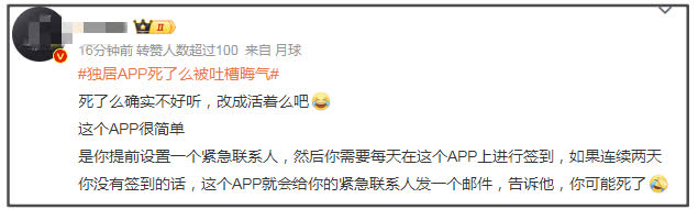 在評論區互動,「死了麼」開發者進一步透露,這款App主要服務身處一二線城市的獨居人士,重點是年輕人群體。