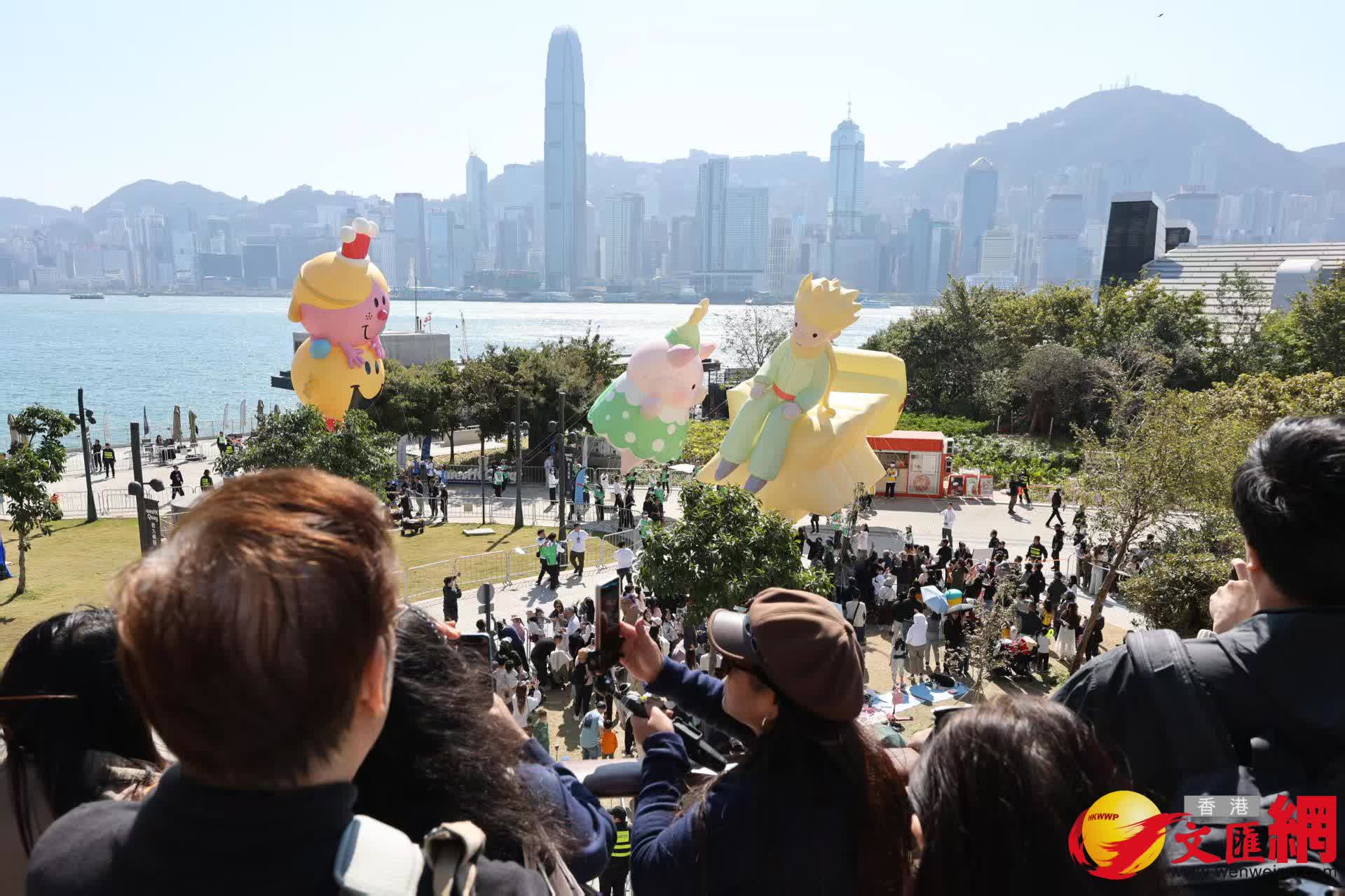 香港首個大型IP角色輕氣球巡遊「Merry Balloon Parade」今日壓軸登場,近20個IP角色沿海濱穿梭香港故宮文化博物館至M+,吸引過萬名市民及旅客前來欣賞。