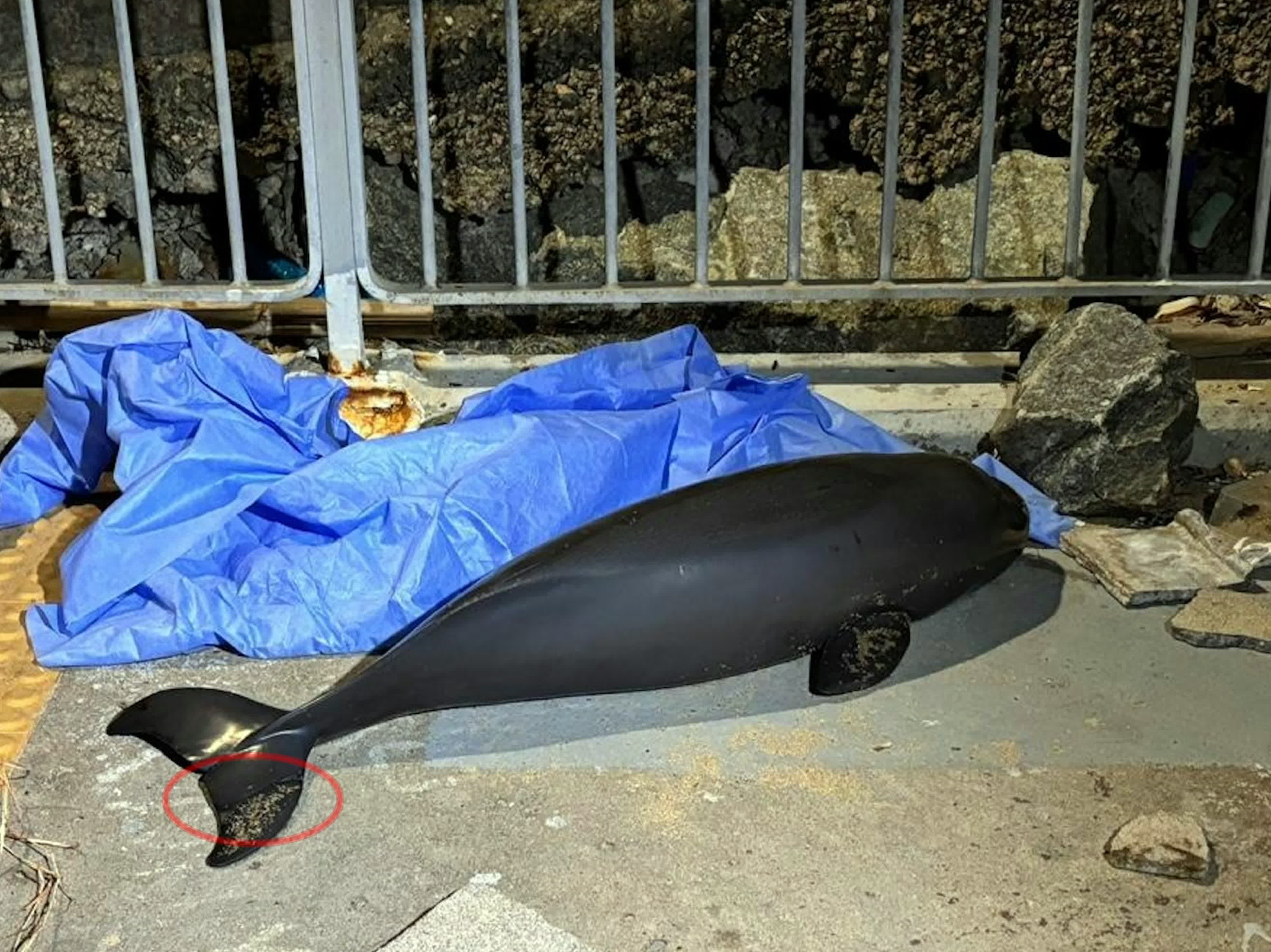 香港文匯報訊(記者 蕭景源)今日(11日)下午約5時許,警方接獲市民報案,指途經深井青龍頭近青龍灣附近時,發現一條海豚擱淺。警員奉召到場證實有一條約3呎長的海豚擱在石灘上明顯死亡,遂通知愛護動物協會派員到場處理。協會人員到場證實豚屍的右邊尾鰭有一道明顯傷痕,不排除是遭船艇的螺旋槳打中造成,豚屍其後由協會人員檢走,將轉交香港海洋公園保育基金,以確認品種及作詳細解剖分析。
