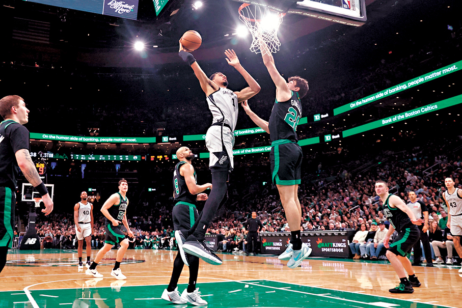 香港文匯報訊(記者 楊浩然)NBA昨日上演多場常規賽,其中聖安東尼奧馬刺在後備登場的雲班亞馬貢獻21分下,作客以100:95擊敗波士頓塞爾特人。