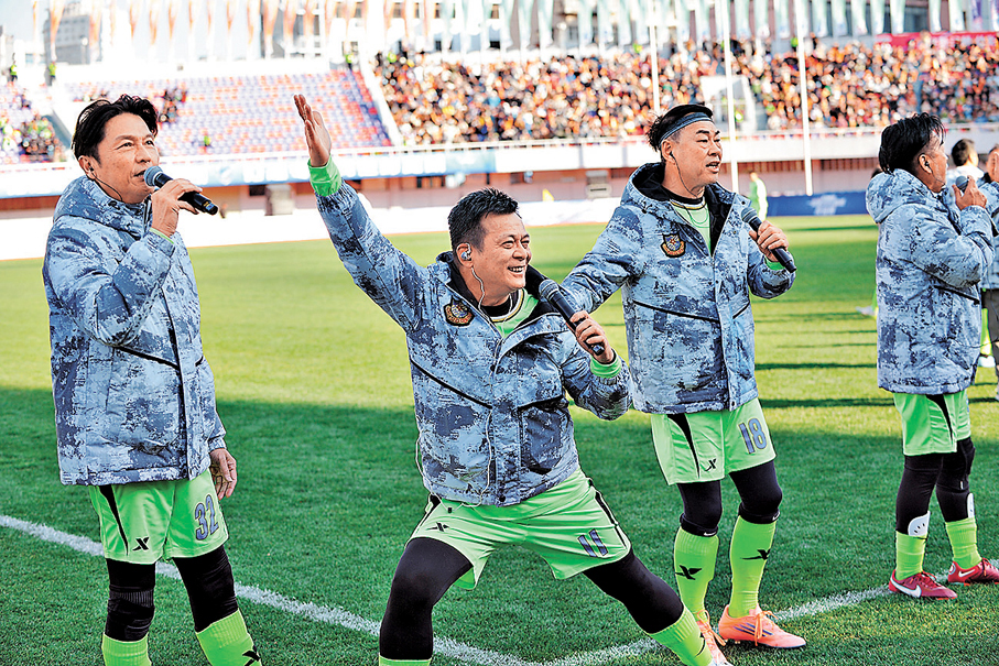 香港文匯報訊(記者 譚旻煦 昆明報道)「滇港同心,助力滇超—2026滇港友誼賽」周六(10日)在昆明體育場開賽。譚詠麟、曾志偉、黃日華、何家勁等一眾香港明星足球隊成員,與馬成、徐陽等本土球員組成的昆明明星足球隊同場競技,近萬名觀眾在冬櫻綻放、紅嘴鷗翩飛的美景中,共赴這場體育與文化交織的友誼之約。