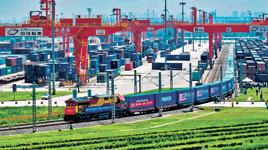 「現在只需要10天,西安的新能源汽車就能跨過裏海抵達阿塞拜疆的首都巴庫;只需要7天,哈薩克斯坦的進口糧油就能返回西安變成市民餐桌上的油潑麵。」西安國際港集團有限公司總經理袁小軍表示,過去班列是「重箱去、空箱回」。現在,可以將哈薩克斯坦的糧食、礦產集結到阿拉木圖碼頭,裝箱運回中國,實現了「重箱去、重箱回」。