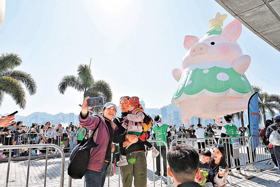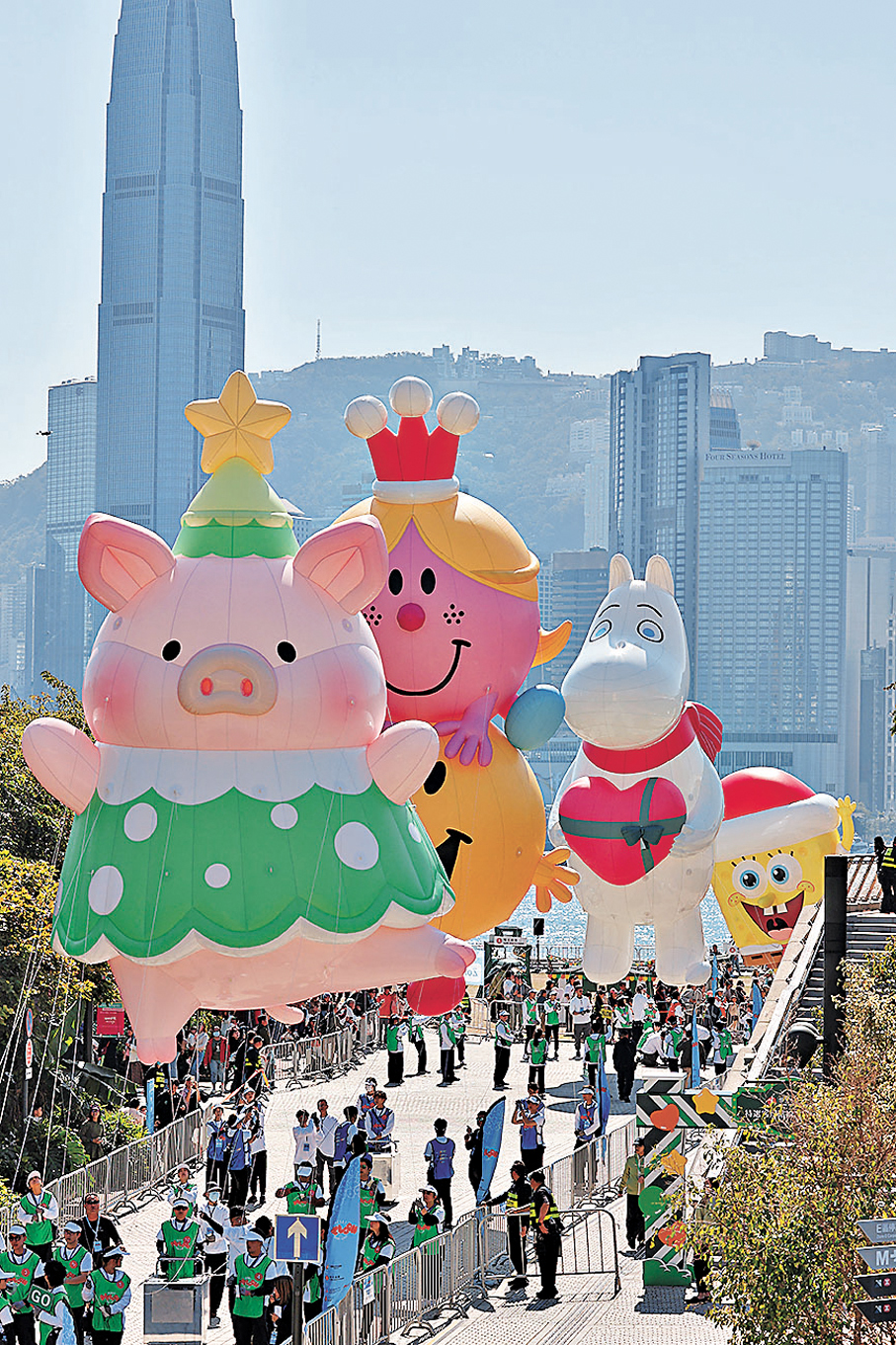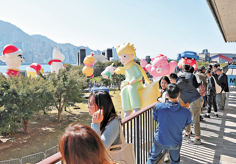 昨日的「Merry Balloon Parade」,一眾IP角色巨型輕氣球沿西九文化區的海濱巡遊,穿梭於香港故宮文化博物館至M+,環迴一次,吸引過萬名巿民和旅客到場觀賞,不少人紛紛舉機打卡,與IP角色輕氣球合照,場面熱鬧。