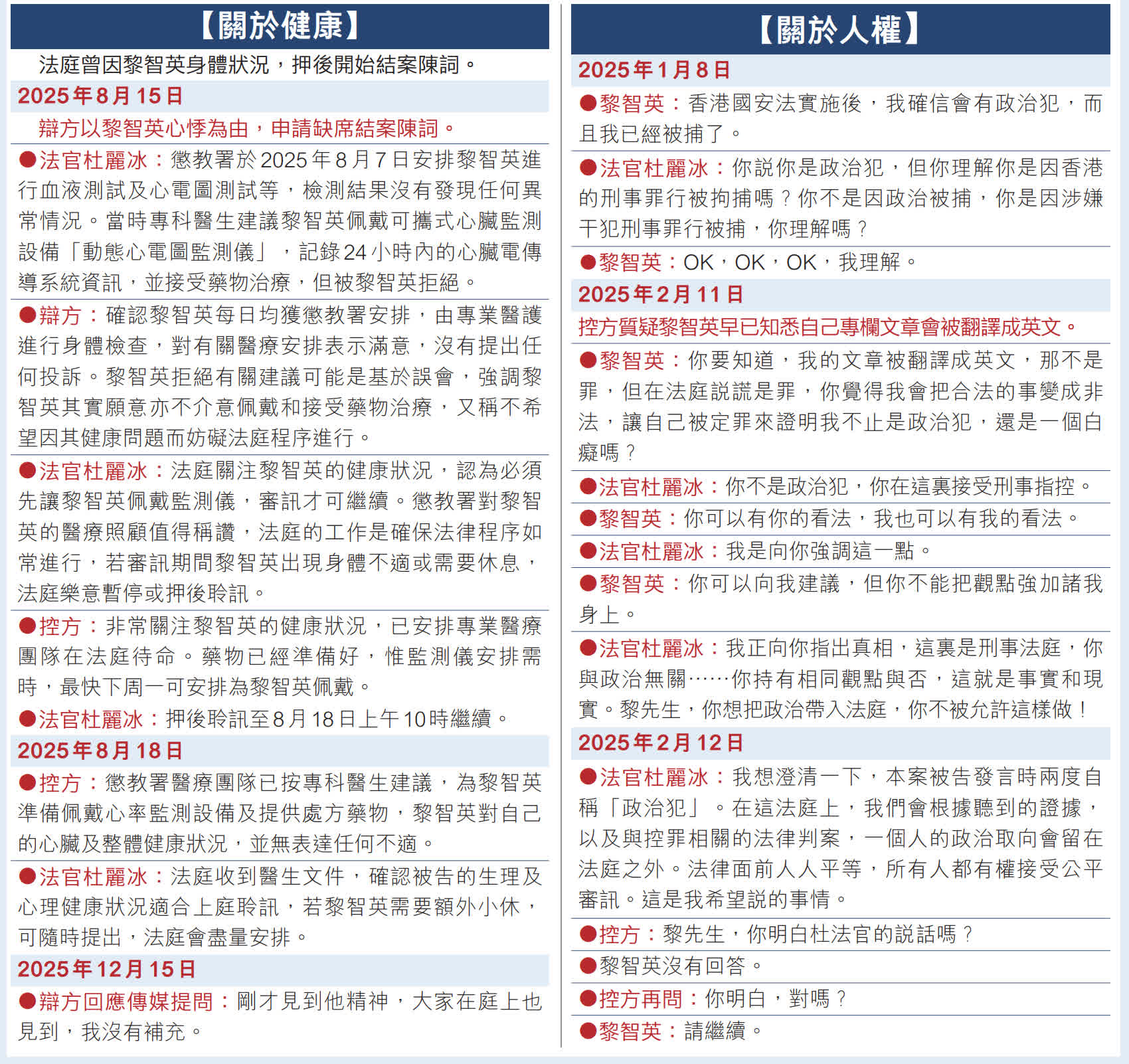 黎智英案審訊期間,始終有別有用心者企圖將其犯罪行為包裝成所謂「政治迫害」,又企圖將其打造成健康不佳、遭受不合理對待的「英雄」,但事實勝於雄辯,包括法官、黎代表律師、特區政府均曾反駁有關論調。