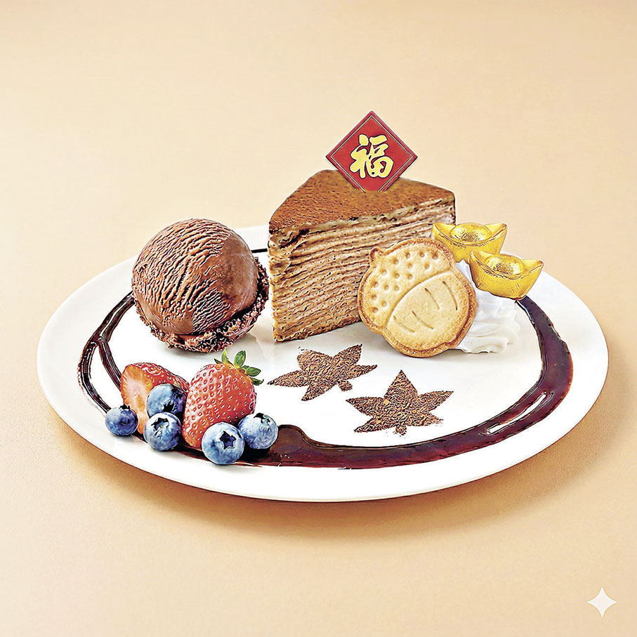 想感受節日甜蜜氣氛,當然不能錯過Chip 'n' Dale主題甜品系列。每款甜點靈感源自角色故事與節日主題,視覺與味覺同樣驚喜。除了甜點,更不能錯過以果仁森林為靈感的主題餐點。今次餐牌特別設計多款主食,以橡實、樹葉、木紋等元素貫穿呈現。推薦慢煮A4和牛咖喱蛋包飯,以A4和牛做主角,配上招牌可愛橡果圖案,好味又治癒。雞扒漢堡配薯條,漢堡包表面烤出標誌性的漩渦圖案,再插上可愛的橡果插卡,完美還原森林氣息。選用厚實的香煎雞扒,外皮焦香誘人,鎖住豐富肉汁,每一口都是扎實的滿足感。
