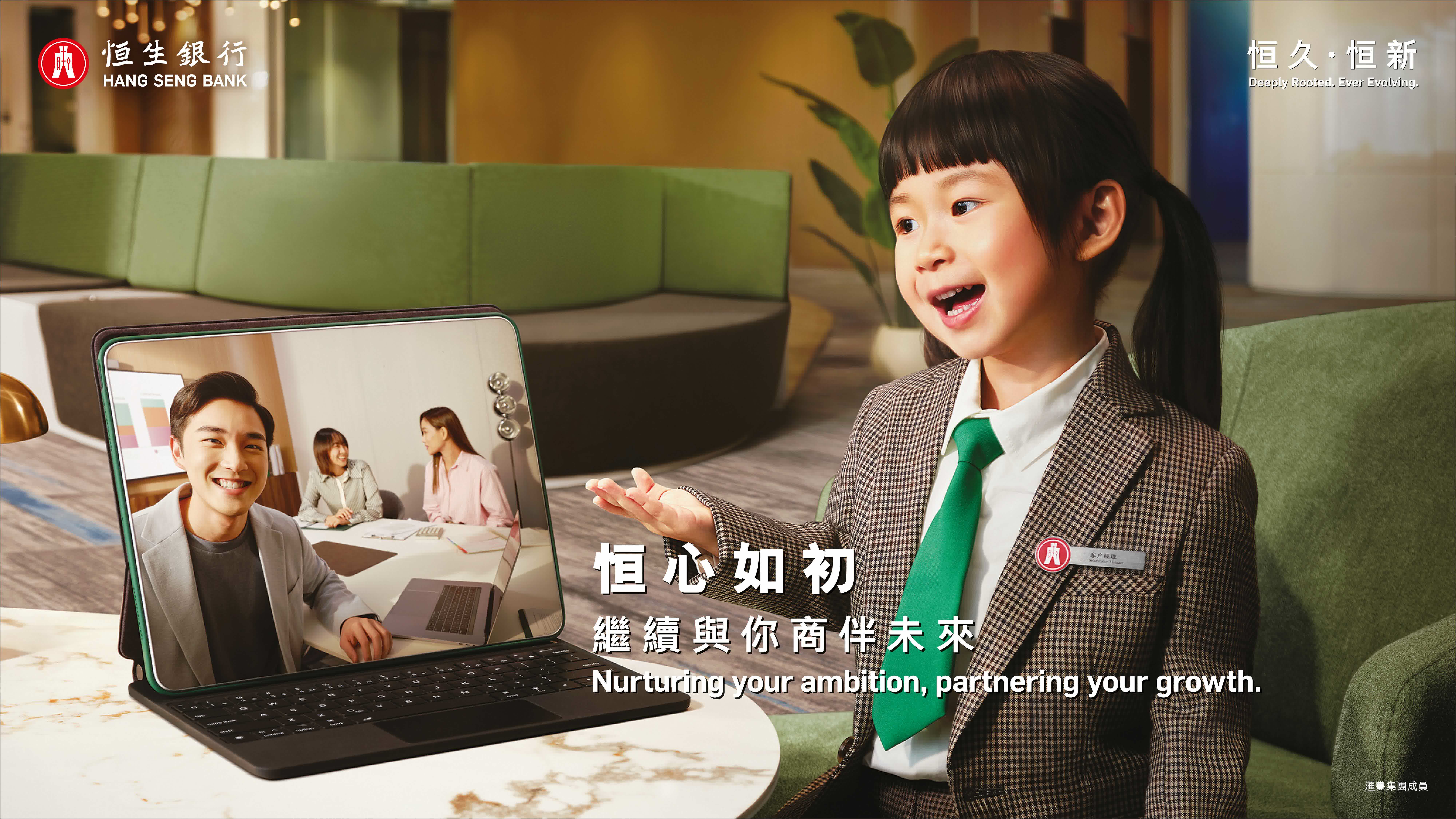 是次品牌企劃以視覺革新為先導。恒生將其沿用多年的標誌性「布幣」圖案,重新詮釋為「通往未來的門戶」,藉此象徵在深厚根基上開啟新篇章。系列廣告中,更以兒童扮演銀行職員的溫暖畫面,強調服務理念與客戶關係的代際傳承。