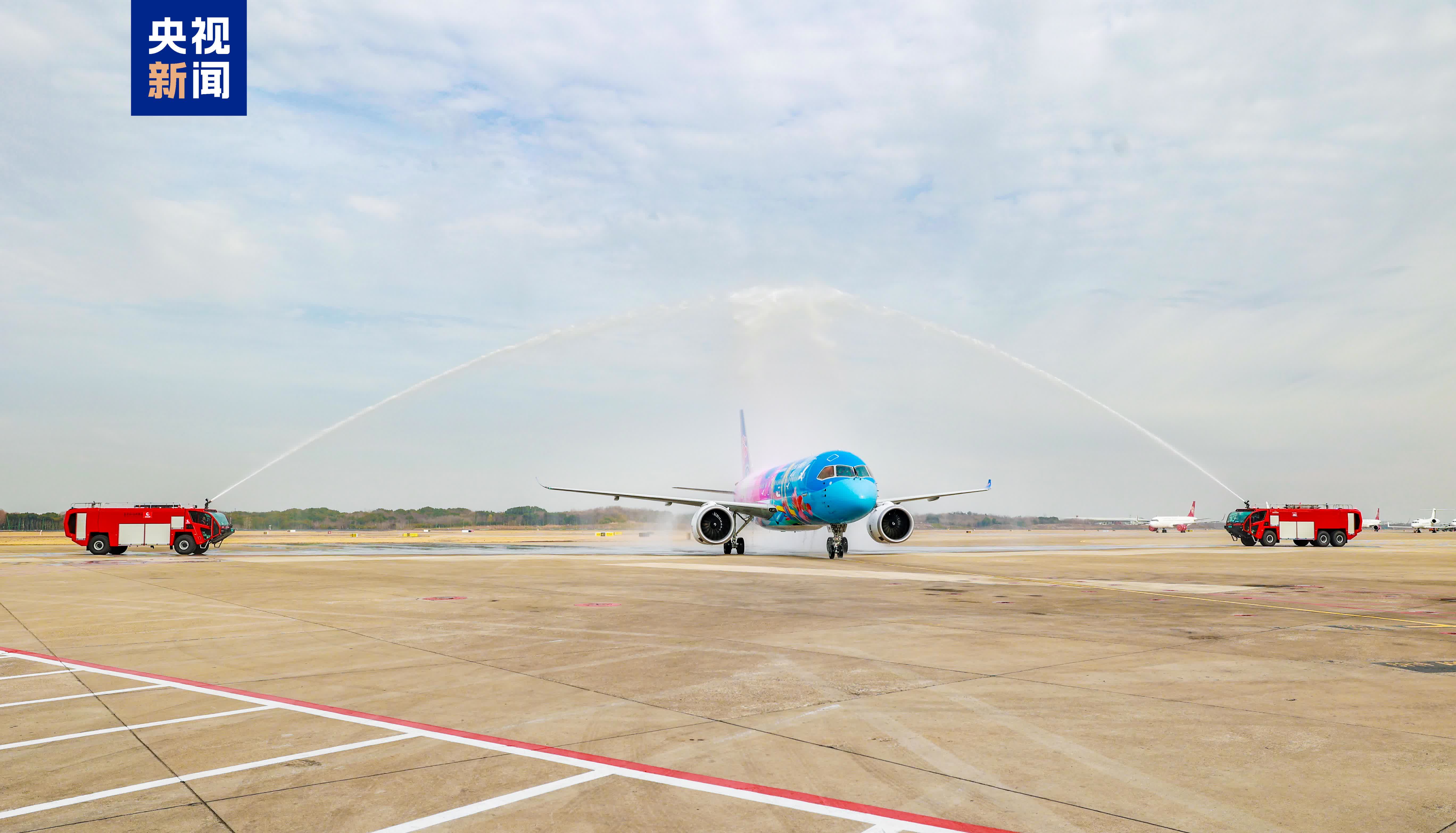 記者從中國南方航空了解到,1月12日,國產大飛機C919首次執飛廣州往返南京航線,首航航班選用國內首架C919十五運會彩繪飛機「大美灣區」號執飛。飛機當天平穩降落在南京祿口國際機場後,緩緩穿過象徵民航最高禮儀的「水門」。這標誌着國產大飛機C919的航線網絡進一步加密。