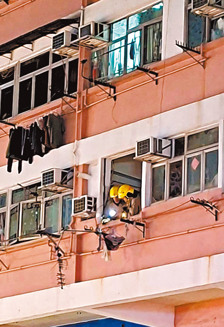 據悉,燒傷墮樓男子姓黃(42歲),送抵醫院時面部敷上燒傷敷料,身上傳出燒焦味。從網上圖片可見,救援人員到場前,墮樓男子呈「大」字形倒臥行人路,並有一個疑似枕頭墊着頭部,地上滿是玻璃碎片。一個嚴重變形扭曲的窗框連同支架雜物等,飛彈至對面馬路的行人路,可見爆炸威力甚猛,而馬路上亦散布大量玻璃碎片及部分窗框。