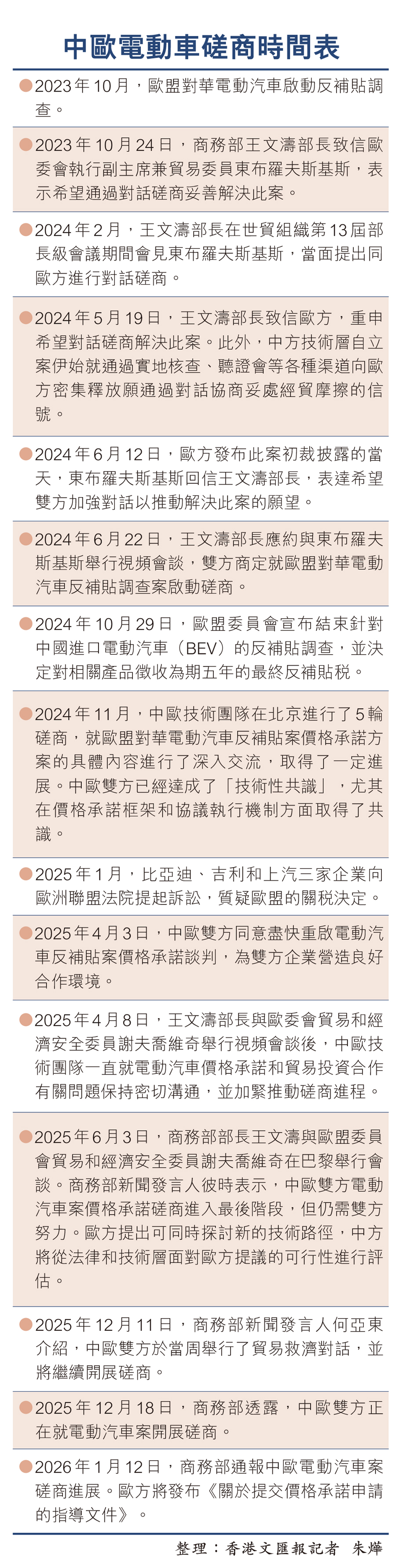 商務部研究院研究員周密對香港文匯報表示,電動汽車領域是中歐經貿合作的重要板塊,其發展態勢既關乎雙方核心利益,也對全球新能源汽車市場秩序具有重要影響。「歐洲是中國電動汽車企業重點開拓的海外市場,中國新能源汽車產品亦為歐洲推進電動車普及、實現綠色減排目標提供了有力支撐,這構成了雙方磋商解決分歧的重要基礎」。