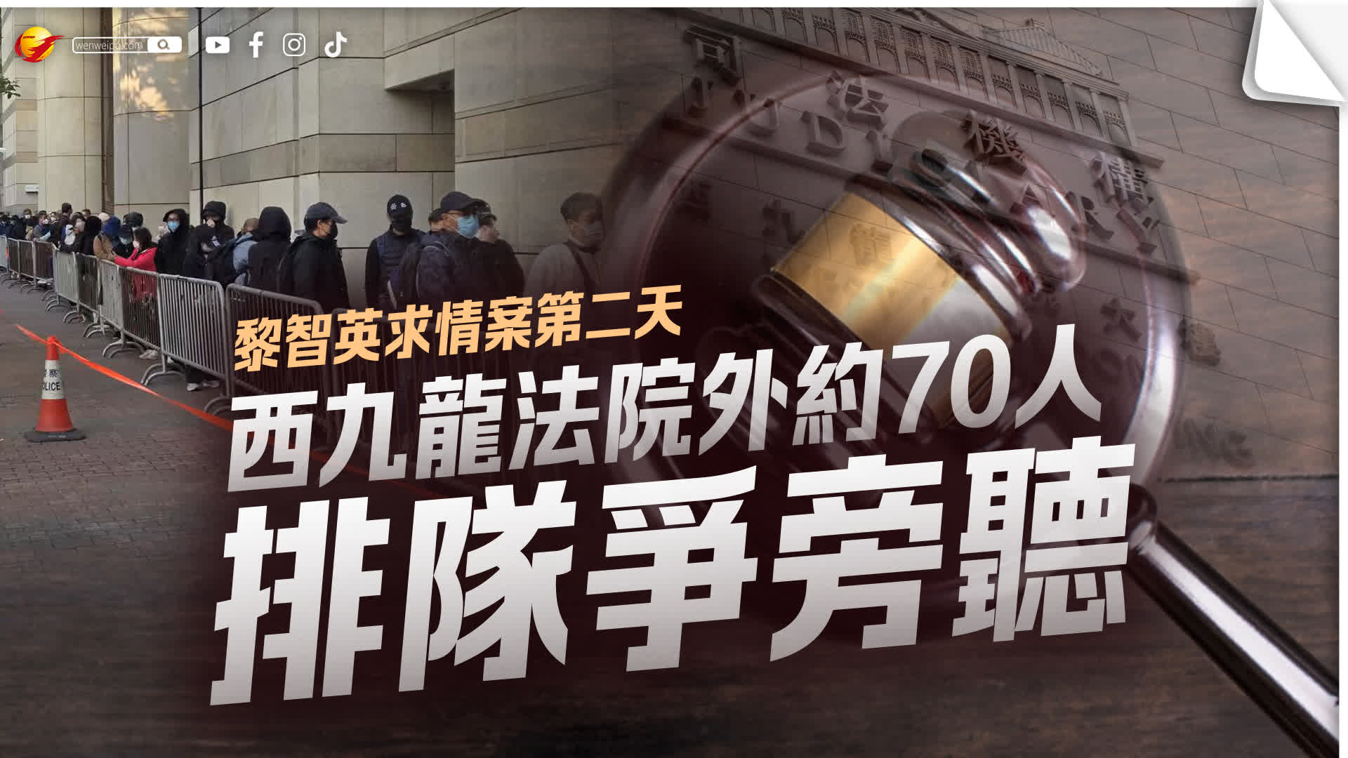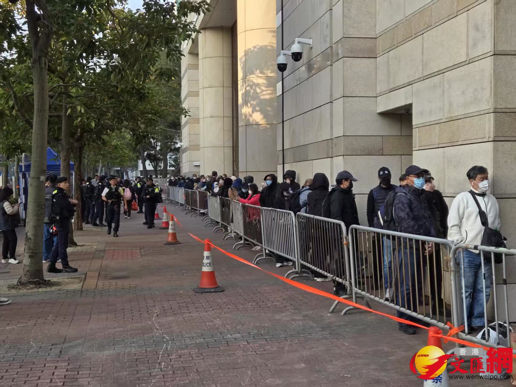 香港文匯報訊(記者 黃書蘭)黎智英案今日(13日)進入被告求情階段第二天審訊。上午7時半,據目測,西九龍裁判法院(暫代高等法院)外有約70名市民有序排隊輪候旁聽籌,部分人自備椅子,附近有數十名警員維持秩序,法院大樓周邊設有鐵馬圍起輪候區。