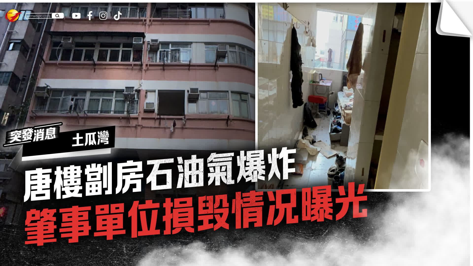香港文匯報訊(記者 蕭景源)土瓜灣北帝街43至45號唐二樓一劏房單位昨日(12日)下午發生爆炸事件,一名42歲姓黃男子由單位墮樓倒臥對開行人路重傷,送院命危;警方初步調查,發現單位內石油氣喉被拔出,正深入調查事故原因。今日(13日)所見,肇事單位被鐵鏈綁起,但大門半開可以看到室內情况,只見約80呎的劏房擺有睡床及一張小枱及坐椅,因爆炸引致一片凌亂,除窗戶已整個飛脫外,床褥有明顯燒焦痕跡,睡床抽屜拉出露出衣物,地上滿布碎片。