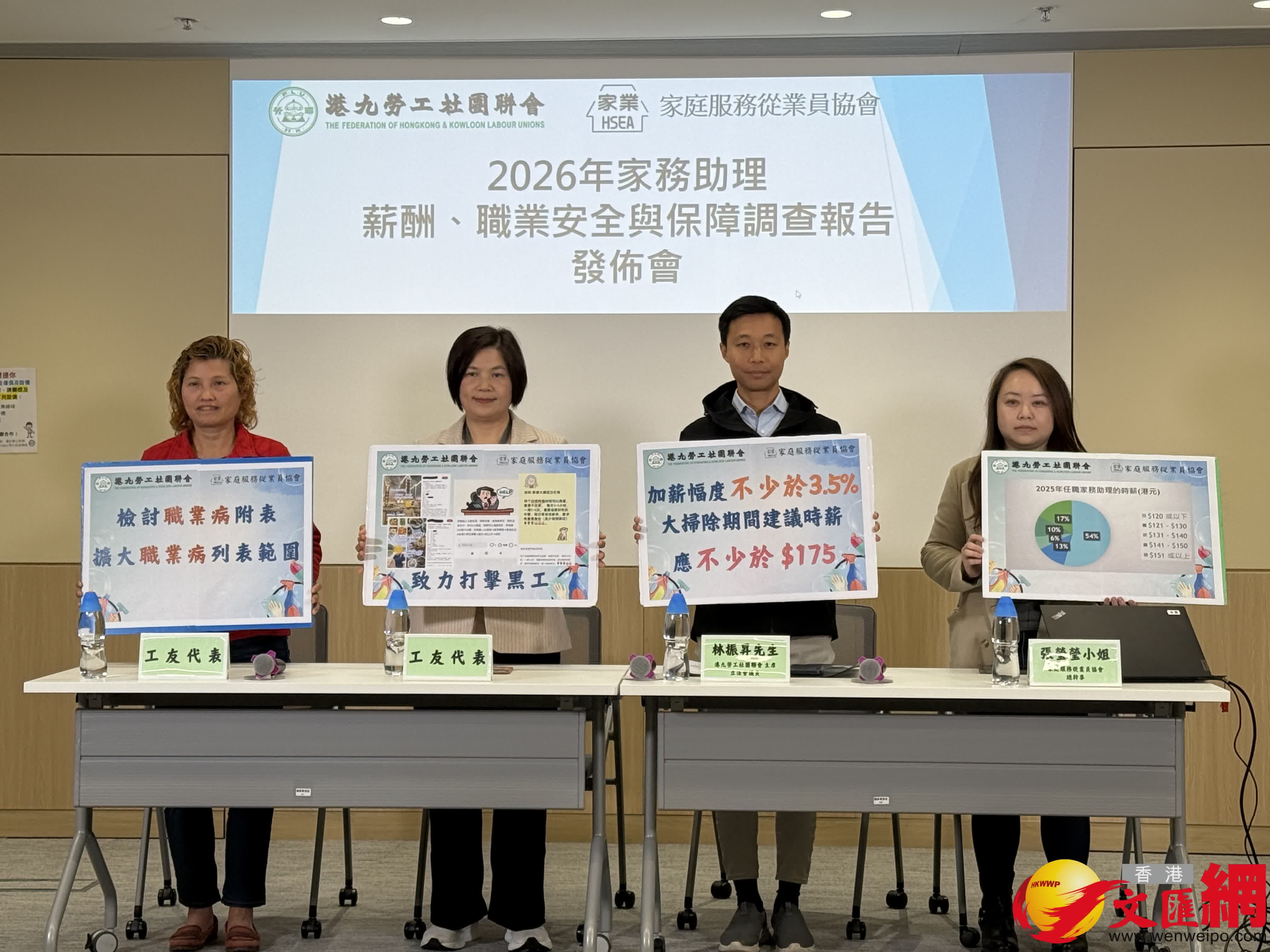 香港文匯報訊(記者 崔瀅)現時,不少家庭聘請家務助理,以舒緩家務瑣事帶來的煩惱,市場需求增加的同時,雇主對家務助理的要求亦不斷提升。港九勞工社團聯會(勞聯)與家庭服務從業員協會(家服工會)於2025年11及12月期間展開「2026年家務助理薪酬、職業安全與保障問卷調查」,是次調查收集共192份有效問卷。