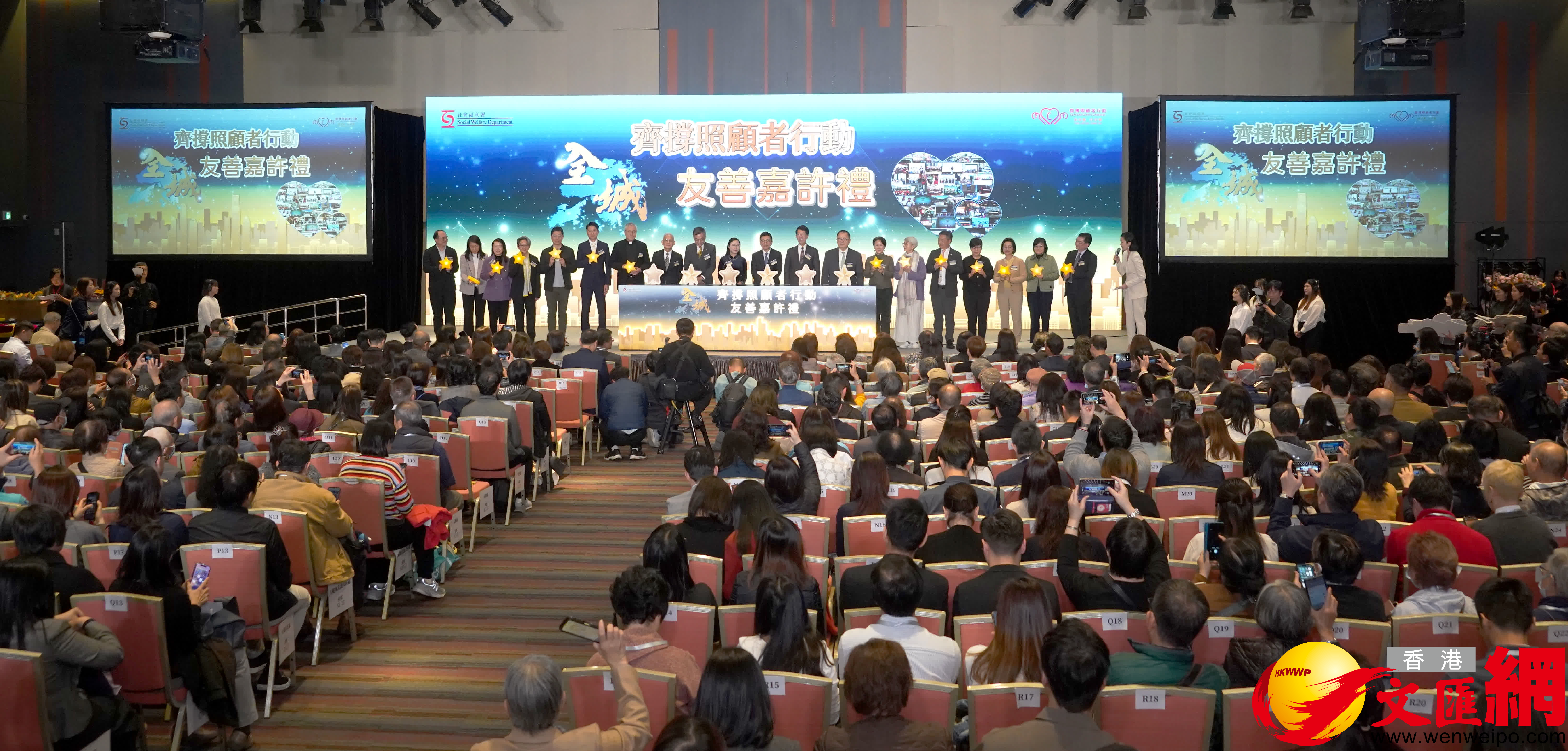 香港文匯報訊(記者 鍾靜雯)社會福利署由2023-24年度起展開為期3年的「齊撐照顧者行動」全港宣傳活動,每年設有不同主題。為響應2025-26年度主題「全城為您全程撐」,今日(13日)社會福利署於香港科學園舉辦「齊撐照顧者行動——全城友善嘉許禮」。勞工及福利局局長孫玉菡、勞工及福利局常任秘書長劉焱和社會福利署署長杜永恒為活動主禮。