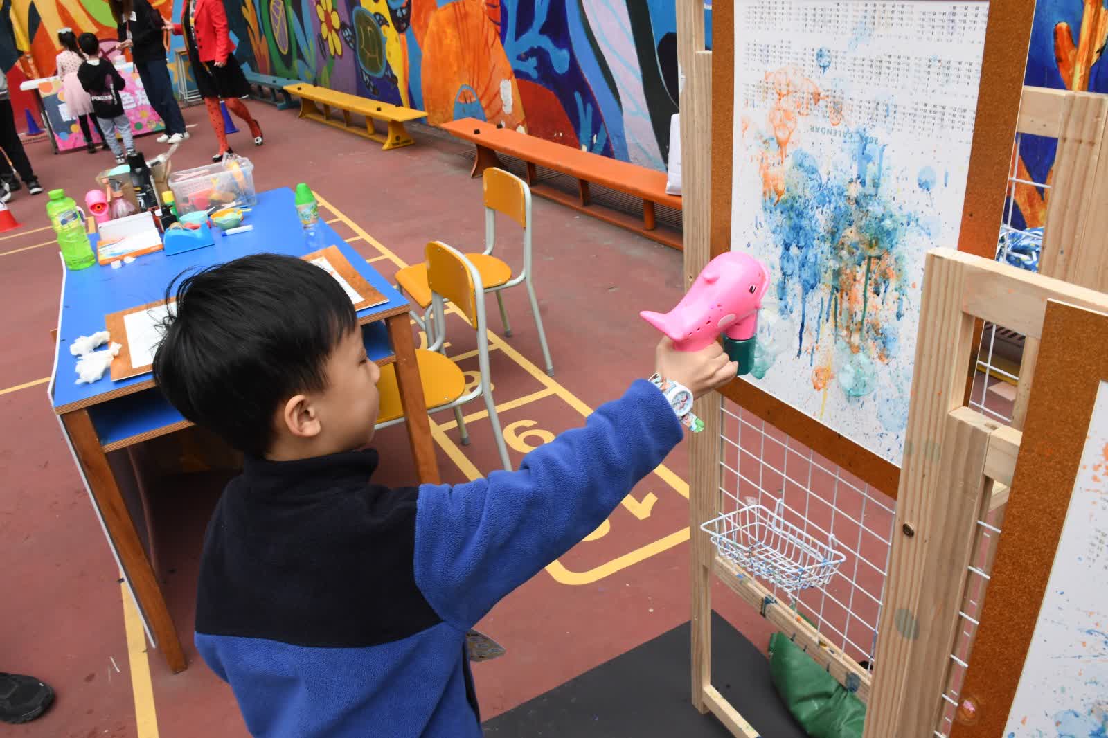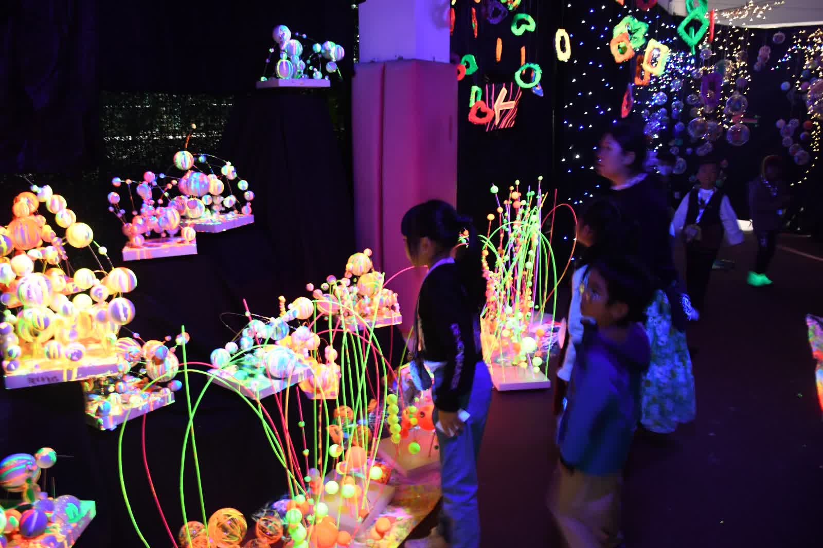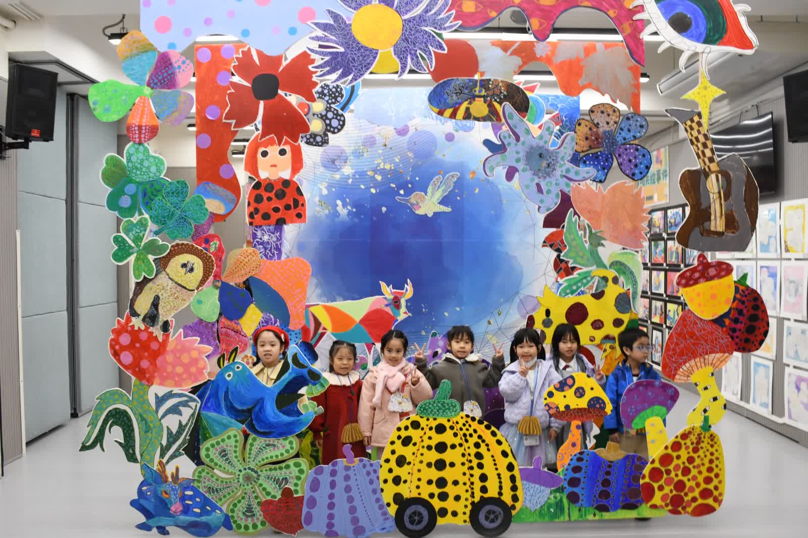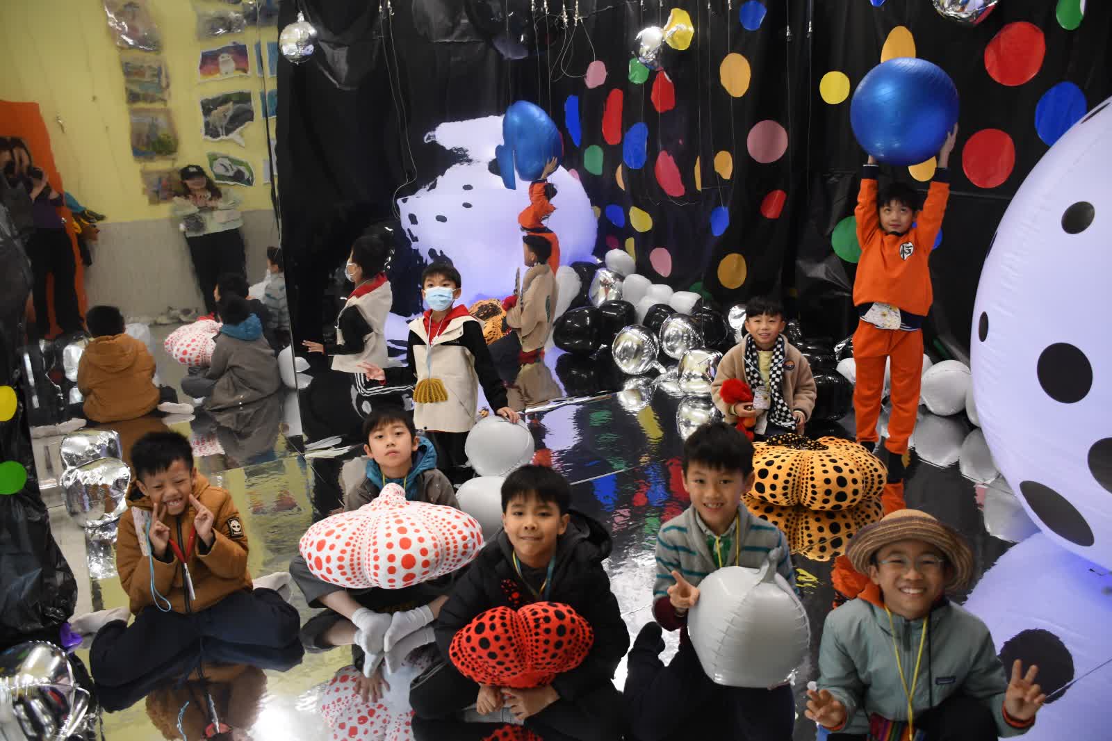 校園內更設有18個互動藝術展區及遊戲角落,將學生天馬行空的創意轉化為多感官體驗之旅,以致敬草間彌生的「奇幻鏡屋」用鏡面折射創造無限延伸的夢幻空間。此外,結合AI技術的「AI創意聯盟影片觀賞區」則引領觀眾探索科技與藝術交融的未來;操場則化身歡樂天地,「南瓜保衛戰」、「彈珠人」及「翻滾彩色球」等大型實體遊戲,讓藝術與動感交融,學生歡笑聲此起彼落,繪出校園美好回憶。