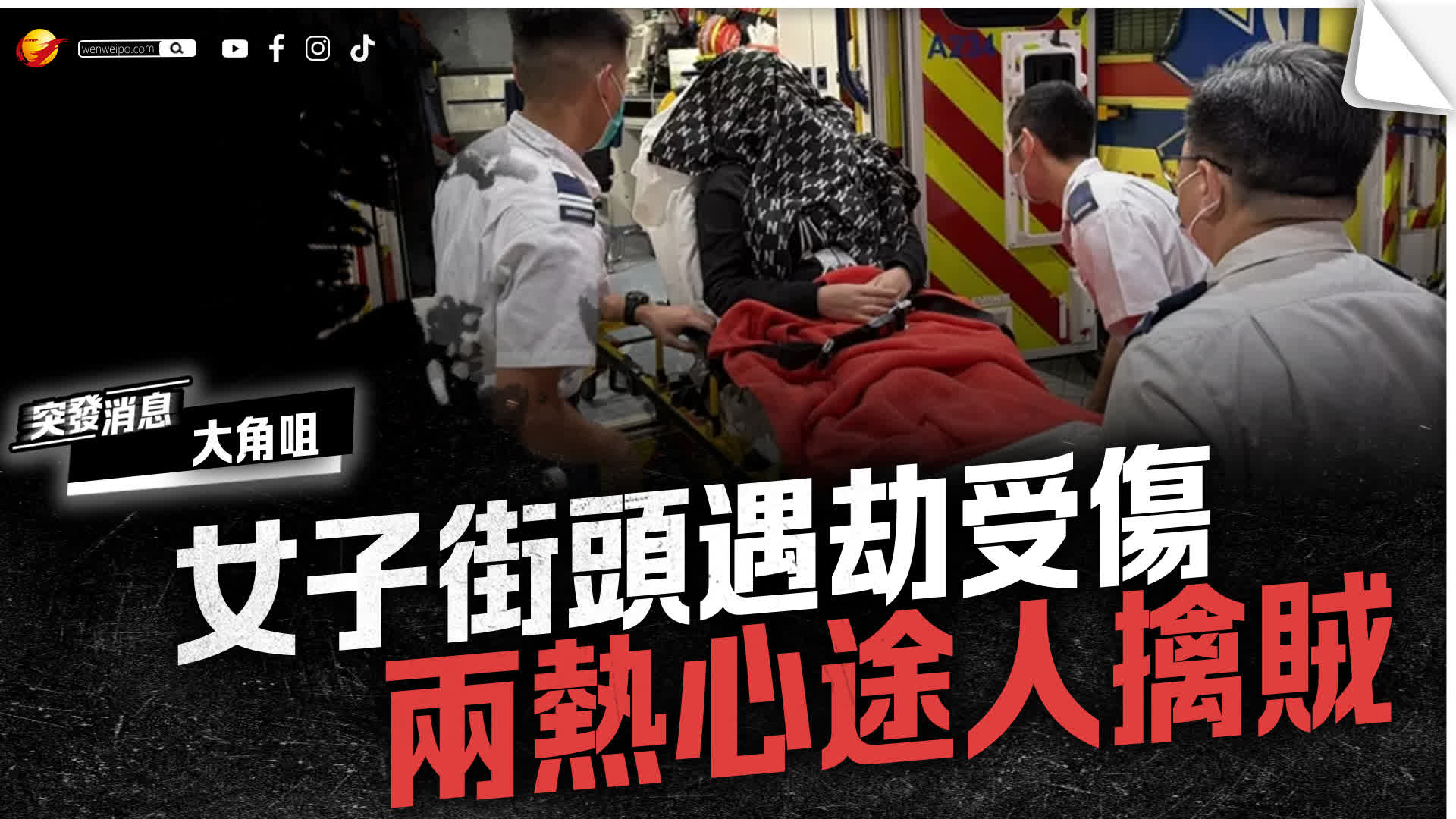 今早(14日)8時許,一名42歲持「行街紙」越南籍女子剛送子女上學後,途經塘尾道197號對外被一名不相識男子攔截,並詢問其身上有否現金;當女事主回應沒有現金,男子聞言揮拳向她施襲,繼而逃走。有熱心途人目擊事件,隨即尾隨追截,疑犯逃至詩歌舞街16號後巷被途人合力制服及報警,女事主未有損失,面部紅腫及嘴角受傷流血,清醒由救護車送院治理。