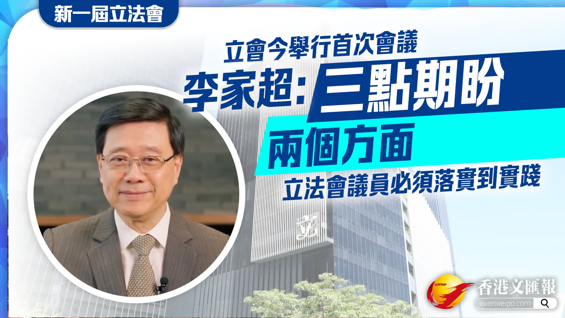 李家超指「三點期盼」是:第一,貫徹行政主導與「愛國者治港」原則相適應的方針,堅持和完善行政主導,確保行政立法良性互動,既互相制衡,又互相配合;第二,議員貫徹和遵守《立法會議員守則》,以國家根本利益和社會整體利益行事,不追求個人政治利益與榮耀;第三,議員既要關心個別的微觀需要,亦要考慮社會整體的宏觀利益,分析問題時,把握好五個系統關係,即全局和局部、當前和長遠、宏觀和微觀、主要矛盾和次要矛盾、特殊和一般的五個關係。