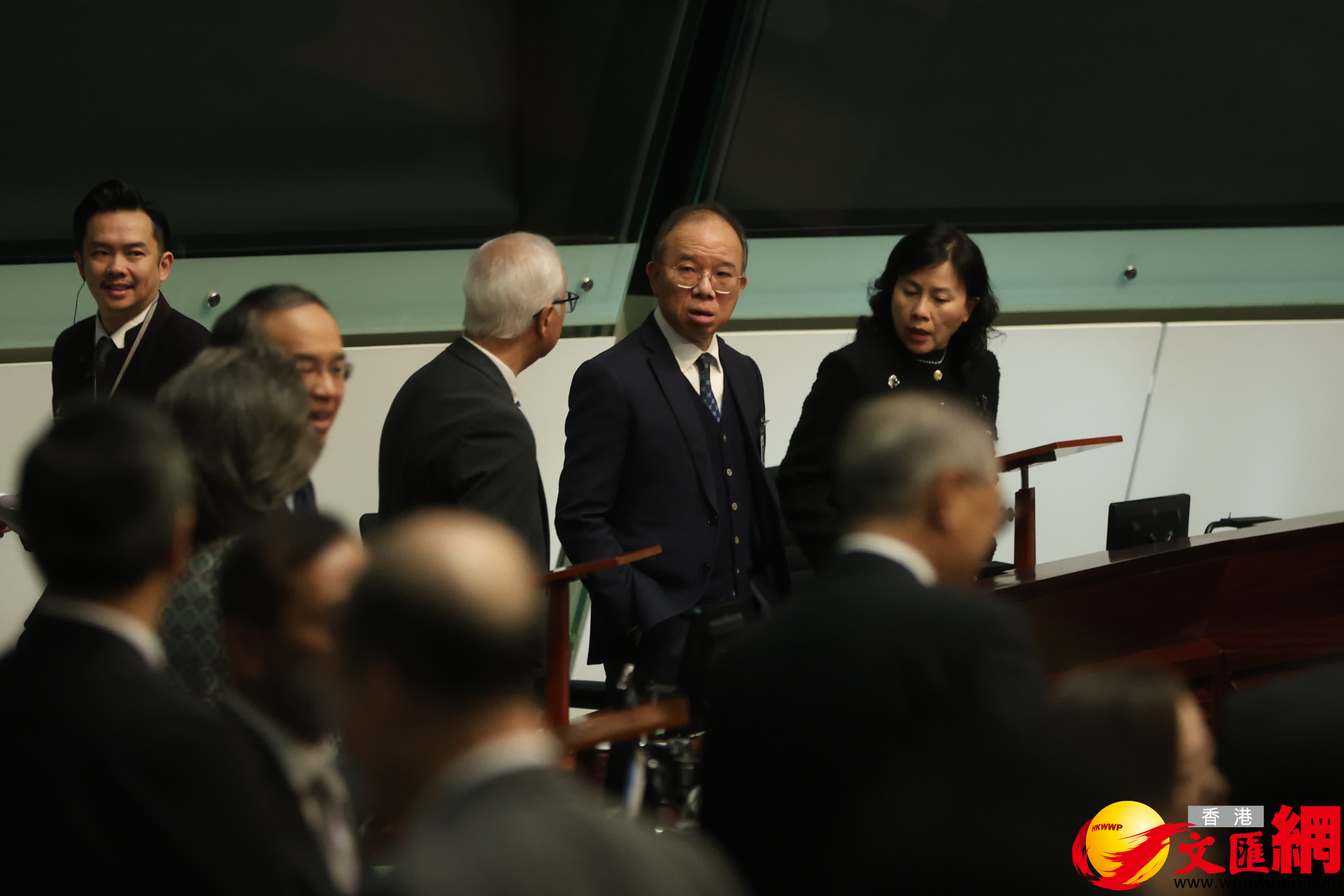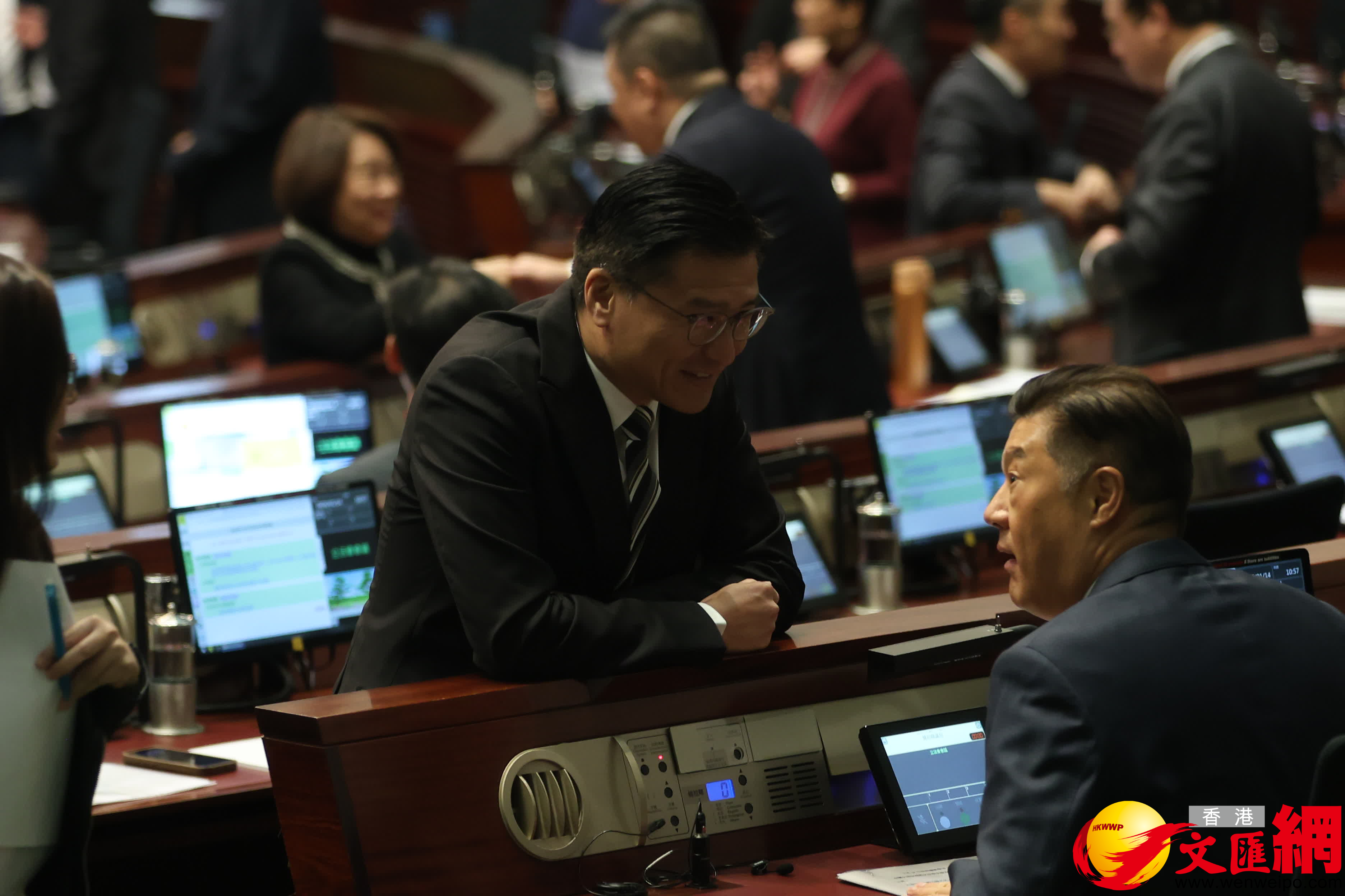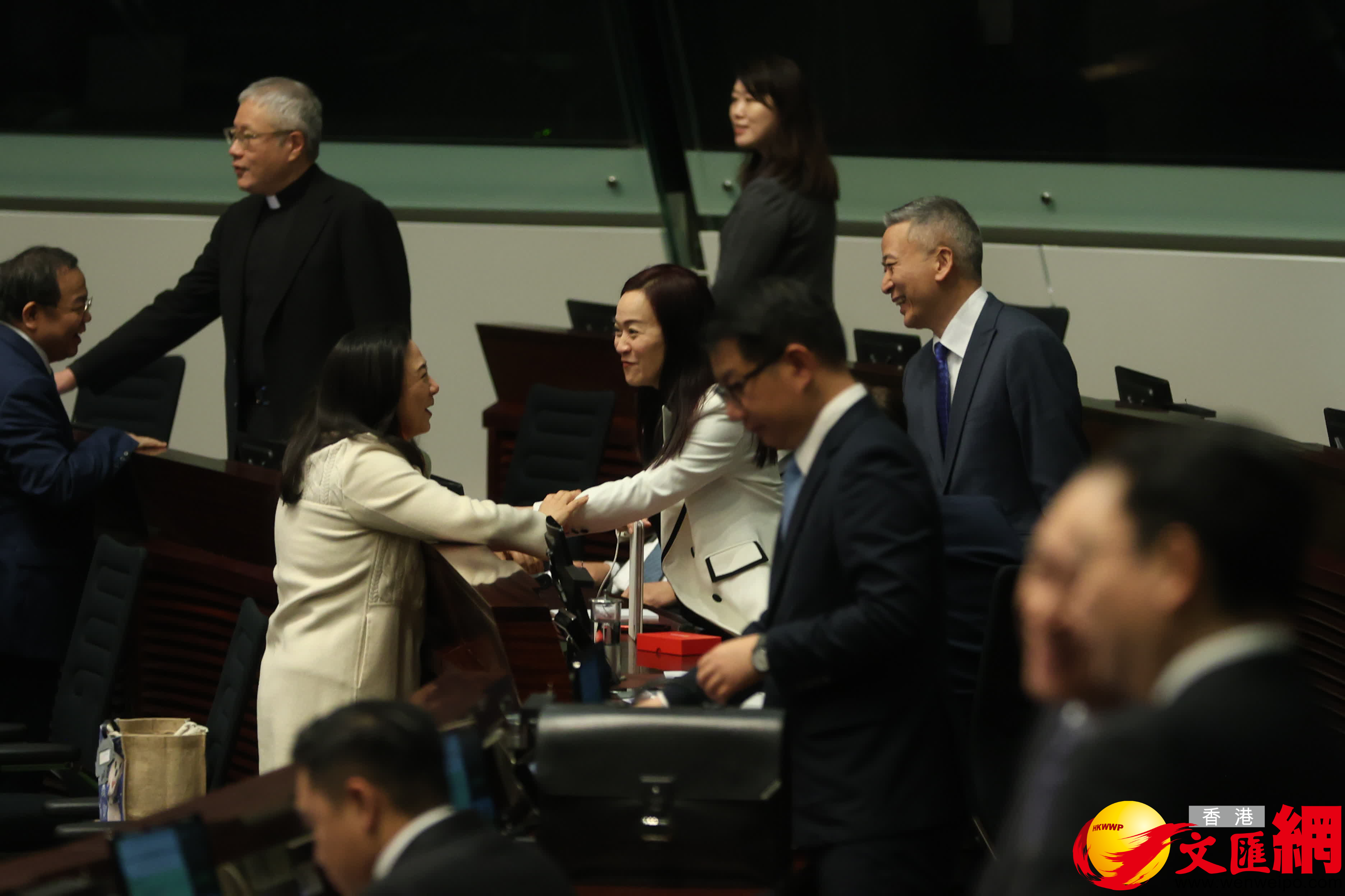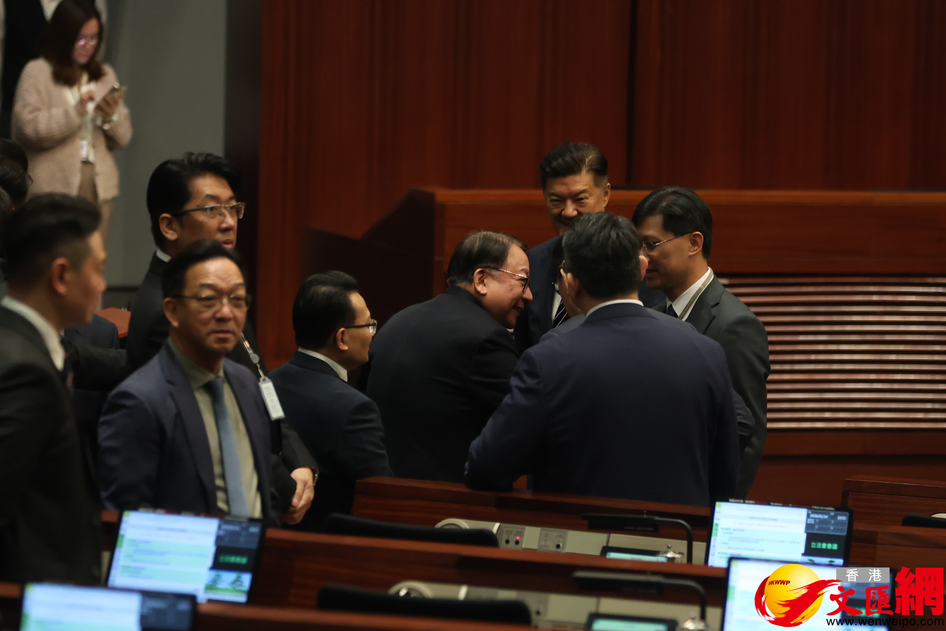 第八屆立法會首次會議今日(14日)上午舉行,官員議員會前互相交流。(香港文匯報記者萬霜靈攝)