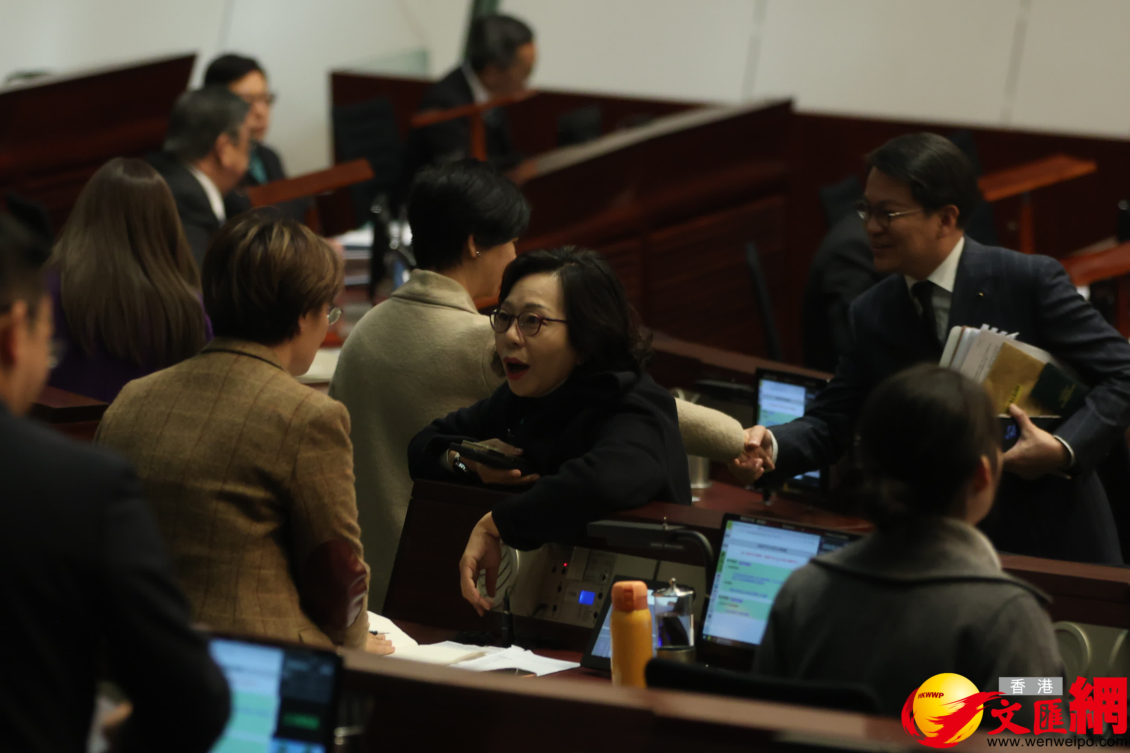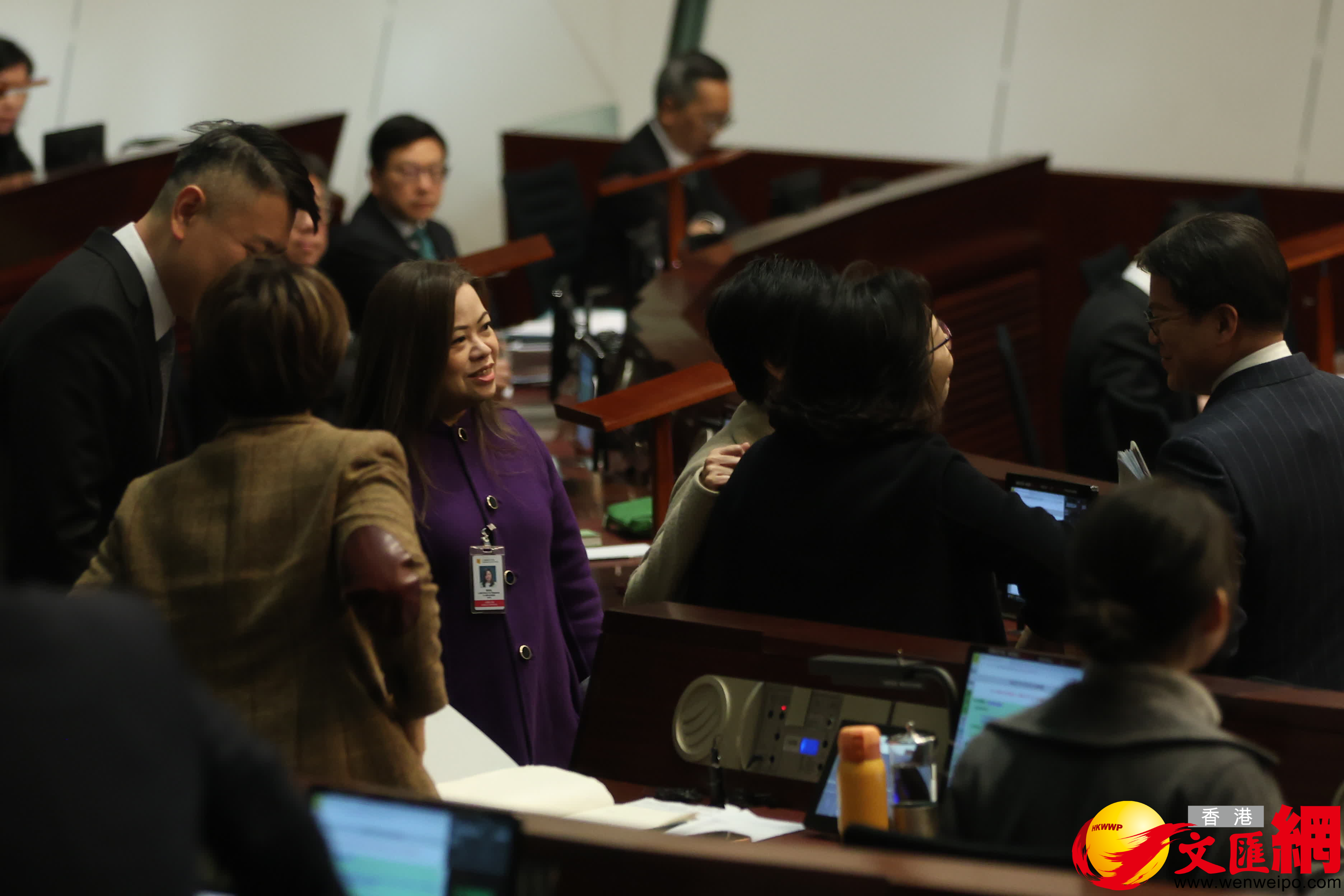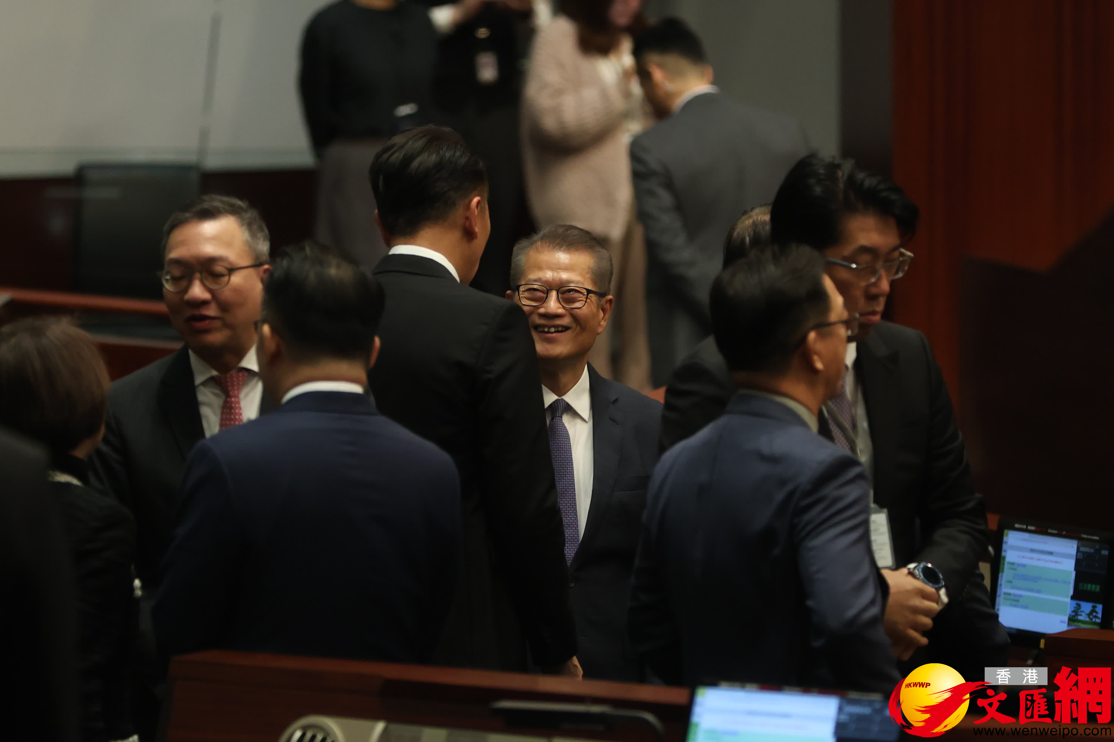 第八屆立法會首次會議今日(14日)上午舉行,官員議員會前互相交流。(香港文匯報記者萬霜靈攝)