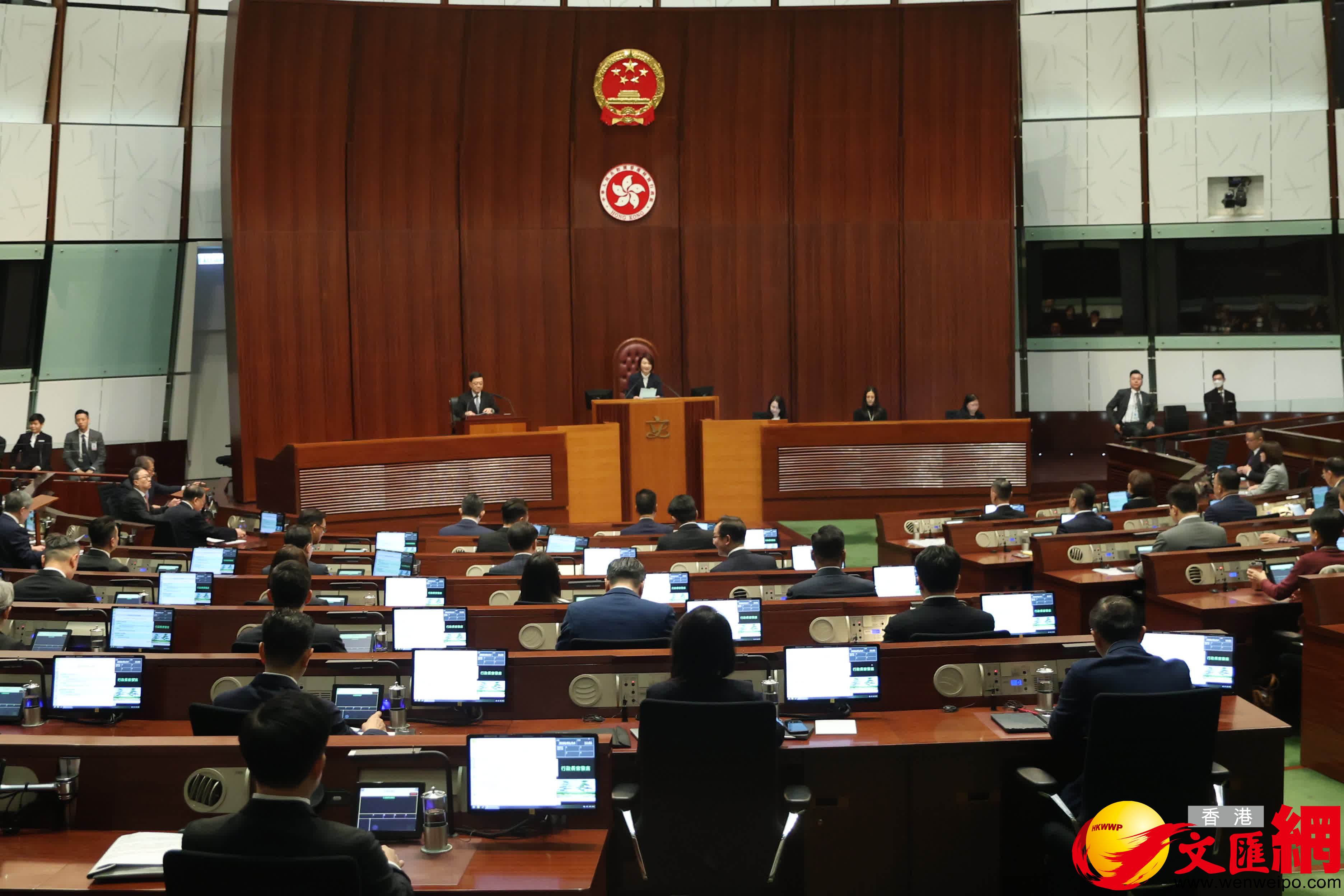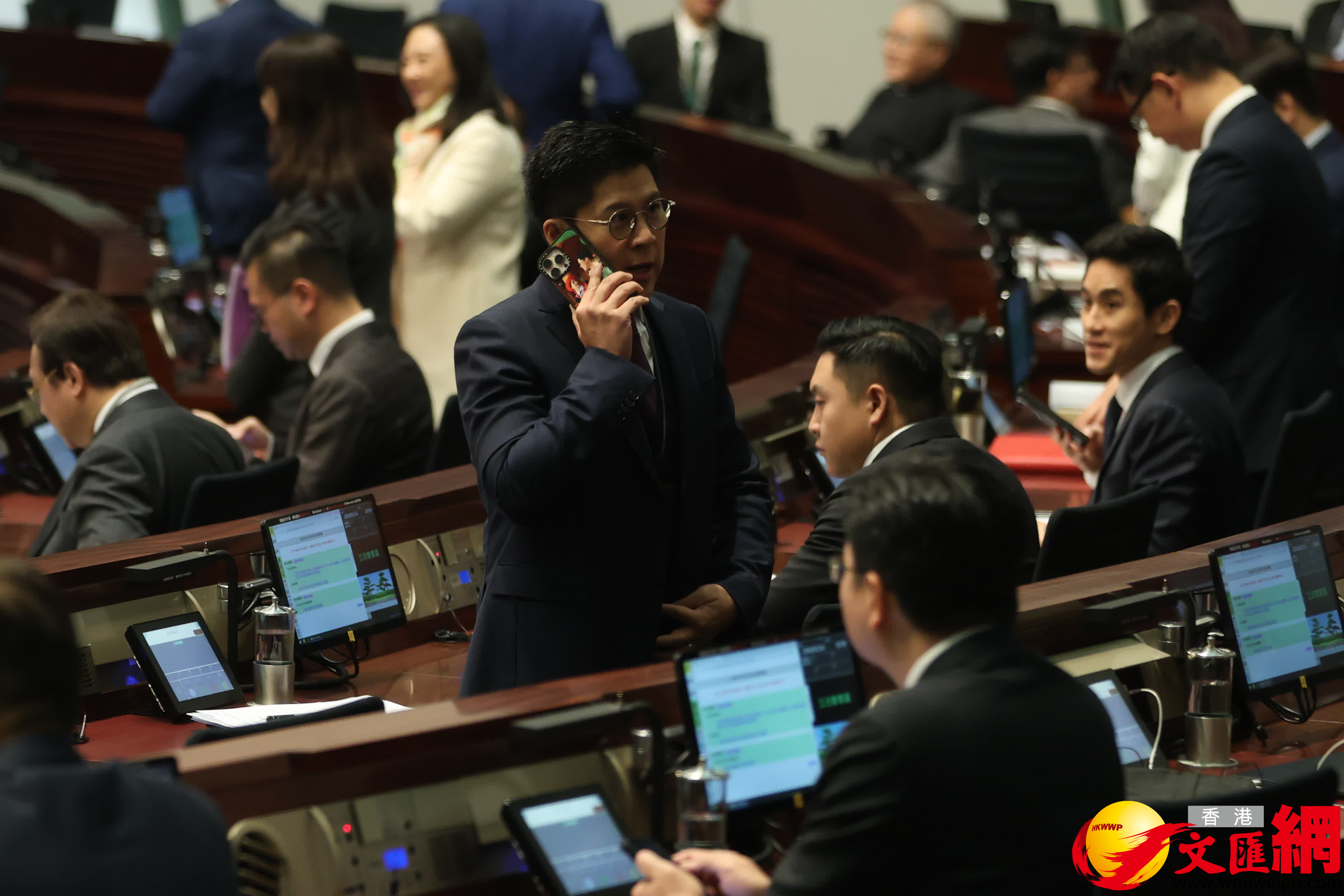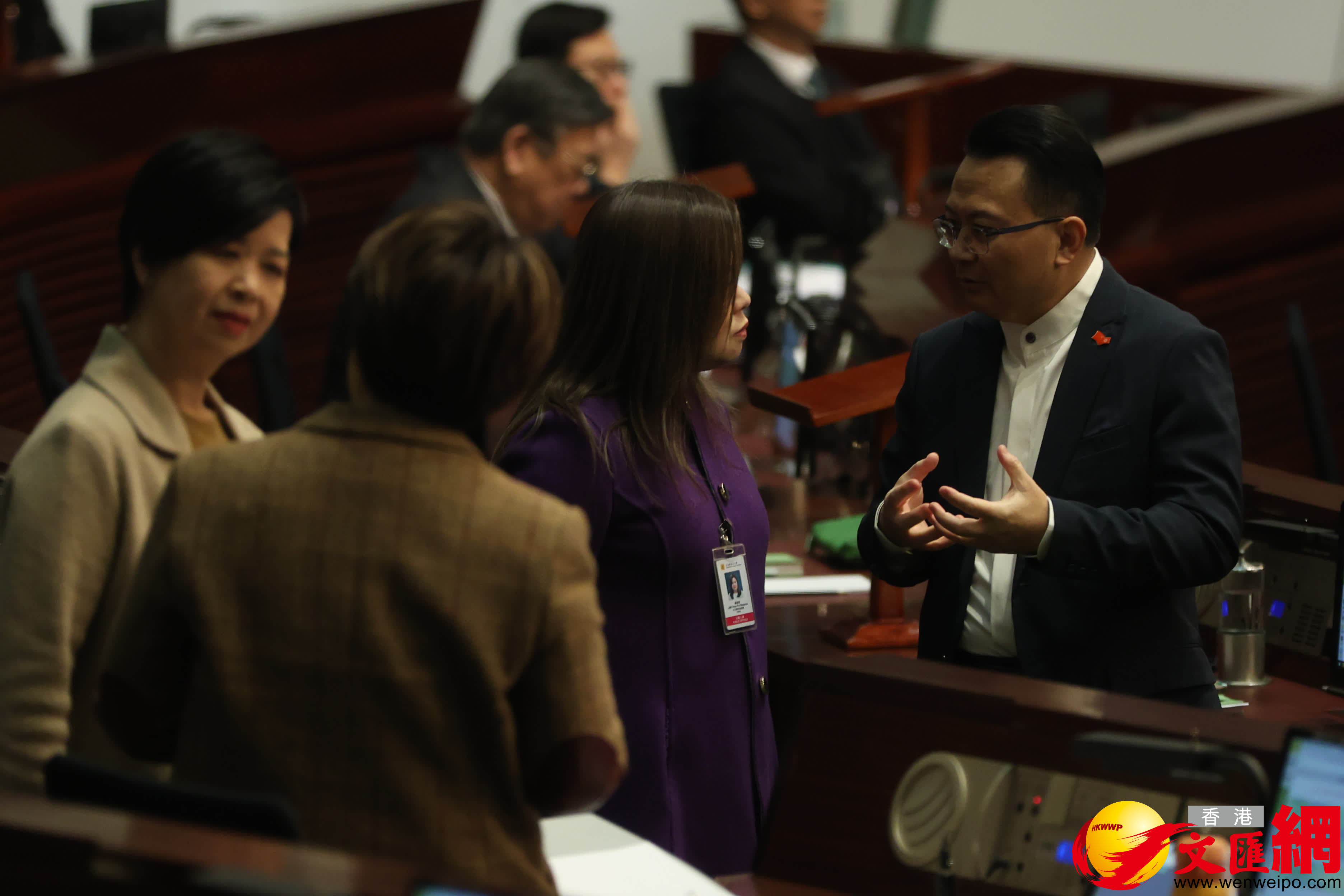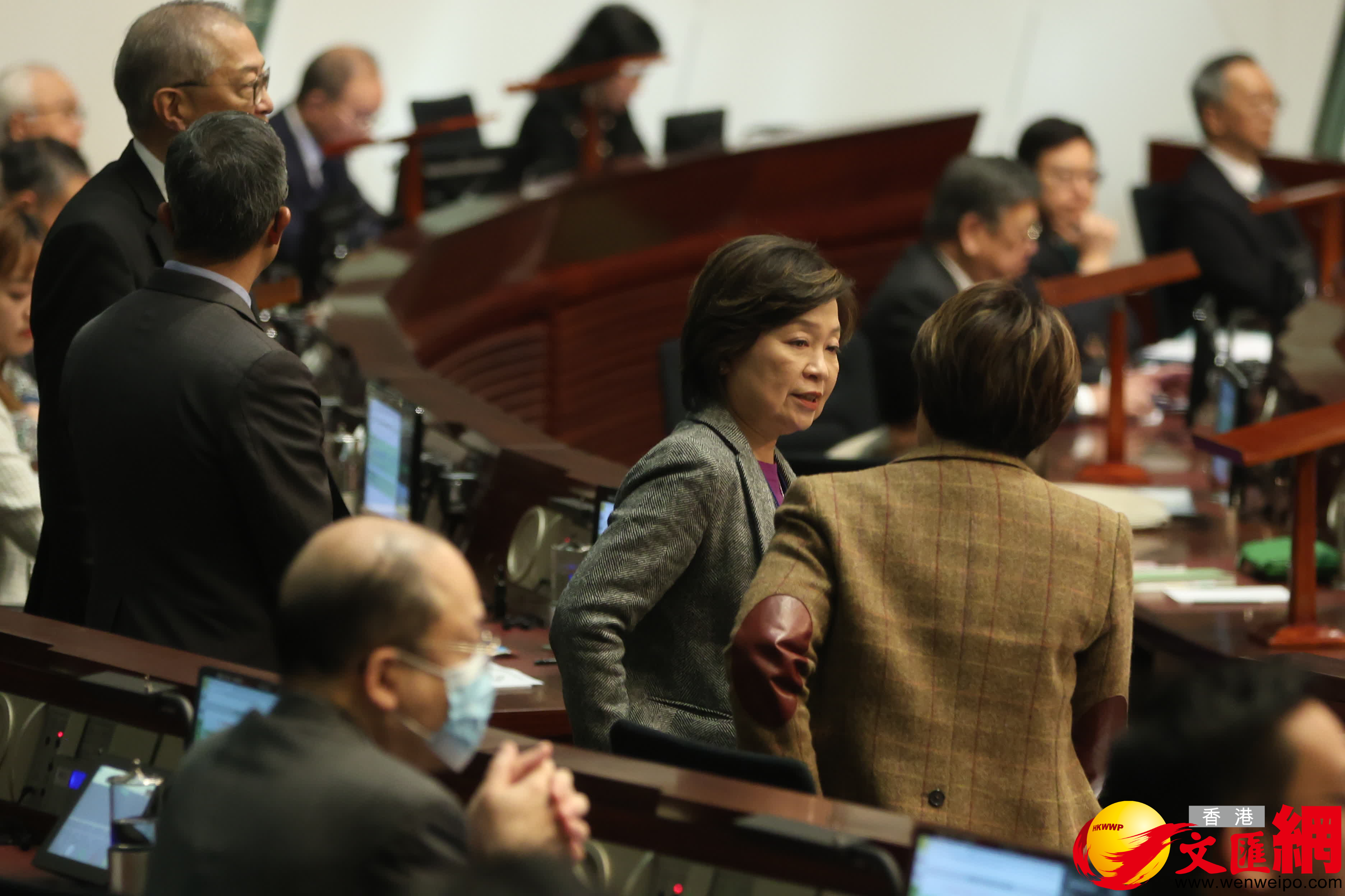 第八屆立法會首次會議今日(14日)上午舉行,官員議員會前互相交流。(香港文匯報記者萬霜靈攝)
