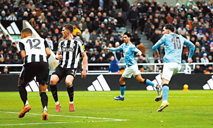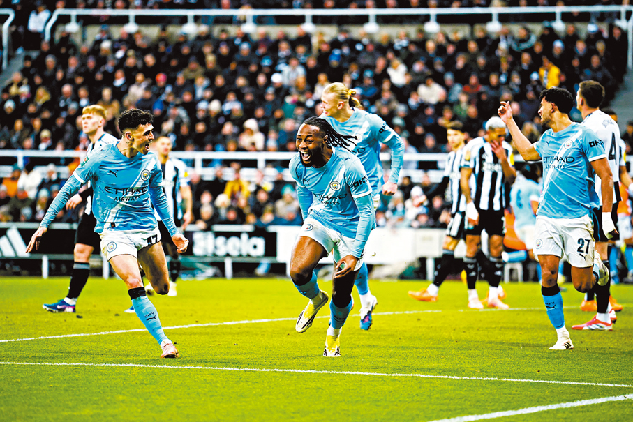 香港文匯報訊(記者 楊浩然)香港時間周三(14日)凌晨英聯盃準決賽首回合賽事,「藍月亮」曼城在僅第二次上陣的新兵安東尼施美安有搶鏡表現下,作客以2:0淨勝紐卡素,晉級決賽機會高唱入雲。