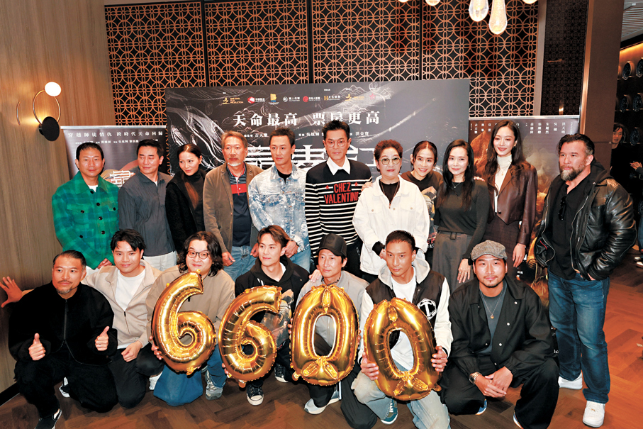 香港文匯報訊(記者 阿祖)電影《尋秦記》上畫至今,港澳地區票房大收6,600萬(港元,下同),前晚舉行慰勞宴,演員古天樂(古仔)、林峯、宣萱、郭羡妮、滕麗名、朱鑑然等出席,並齊集影大合照。總監製古仔壓軸出場,現場即響起一片歡呼聲。到古仔、宣萱、郭羡妮與朱鑑然戲中一家四口合照時,三母子擺出飛吻手勢,古仔望了幾眼,應大家要求配合齊派飛吻。古仔透露該片票房達一億,將推出加長版,並指家庭篇在加長版中佔有一定的比重。