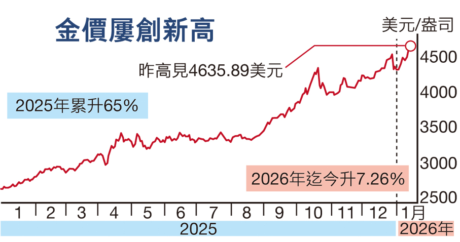 昨日,黃金價格也再創新高,較早時近每盎司4,629美元,上升近1%。錫在基本金屬中表現最為出色,一度上漲6%,銅價也重拾上漲勢頭。分析指,許多金屬都受益於製造業需求前景改善,包括人工智能等成長型行業的需求。