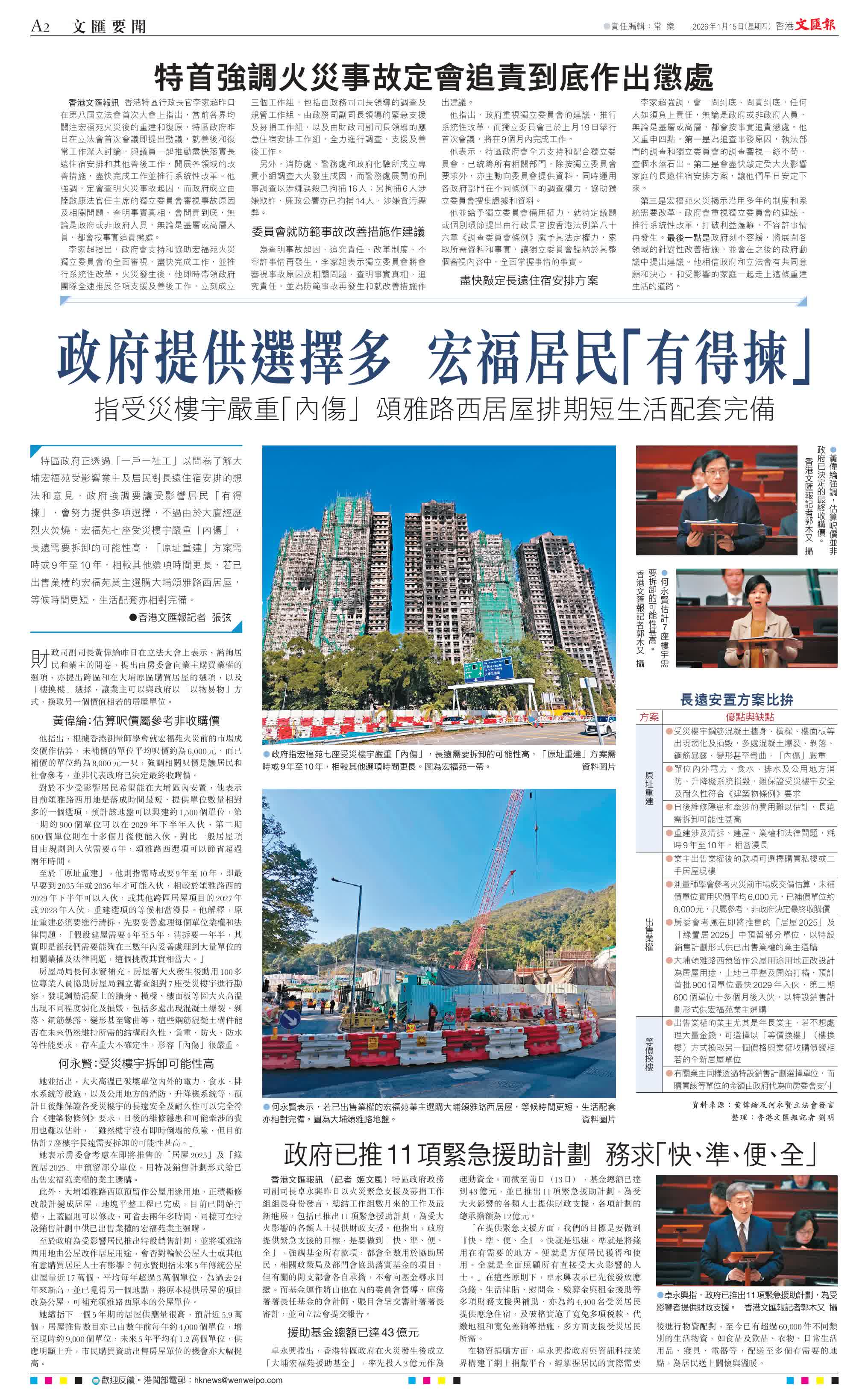 政府提供選擇多 宏福居民「有得揀」 指受災樓宇嚴重「內傷」 頌雅路西居屋排期短生活配套完備