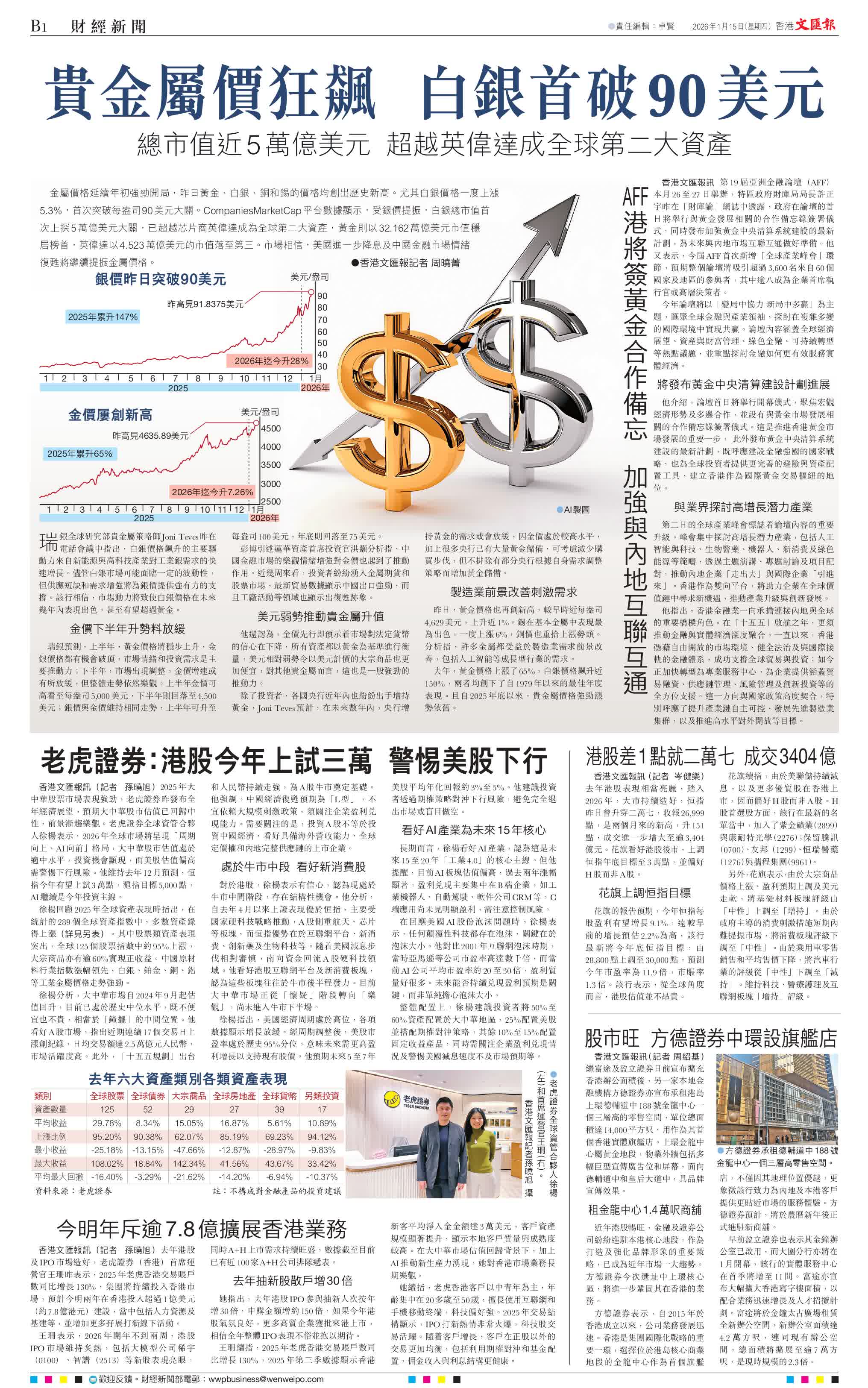 昨日,黃金價格也再創新高,較早時近每盎司4,629美元,上升近1%。錫在基本金屬中表現最為出色,一度上漲6%,銅價也重拾上漲勢頭。分析指,許多金屬都受益於製造業需求前景改善,包括人工智能等成長型行業的需求。