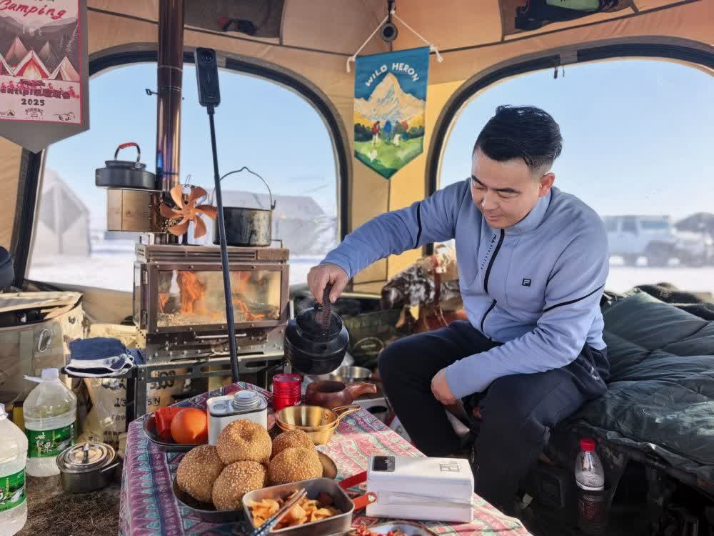 小小的帳篷內,暖爐將溫度拉升至十幾攝氏度。一簾之隔,是零下30攝氏度的嚴寒與帳內的如春暖意。「這裏比我想像中更安靜、更純粹。這次我是『先遣隊』,下次一定要帶上家人一起來。」他說。