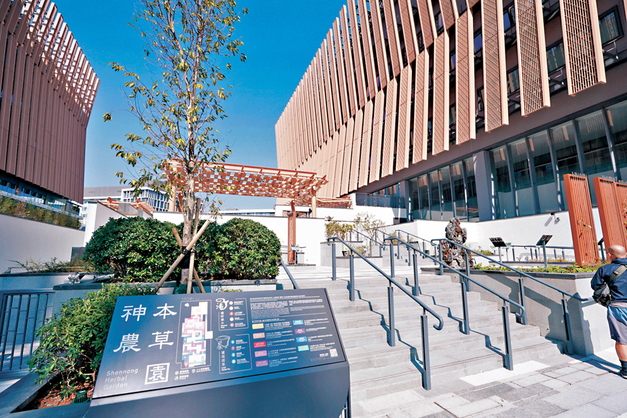 至於標本實驗室,參觀者透過其透明玻璃看到科研人員如何進行中藥標本製備與養護工作;另藥用植物園「神農本草園」則種植了180種嶺南特色藥用植物,包括涼茶和湯水常用材料,例如五花茶中的雞蛋花等,兼具科研與教育推廣用途功能。