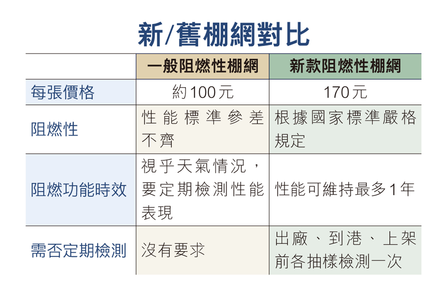 至於安全網的價格,鄭定寕指,考慮到雙重檢測費用及RFID追蹤技術成本,每張安全網定價為170港元。他說,雖然價錢較一般阻燃性棚網貴大約70元,但額外成本主要用於品質把關,確保阻燃性能有效,能夠保障施工人員生命財產安全,認為價錢較高也是值得。