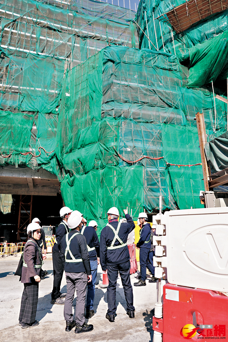 其中,位於小西灣的工地使用竹棚,而觀塘工地則使用金屬棚架,一行人在兩個地盤均逗留約半小時後離開。