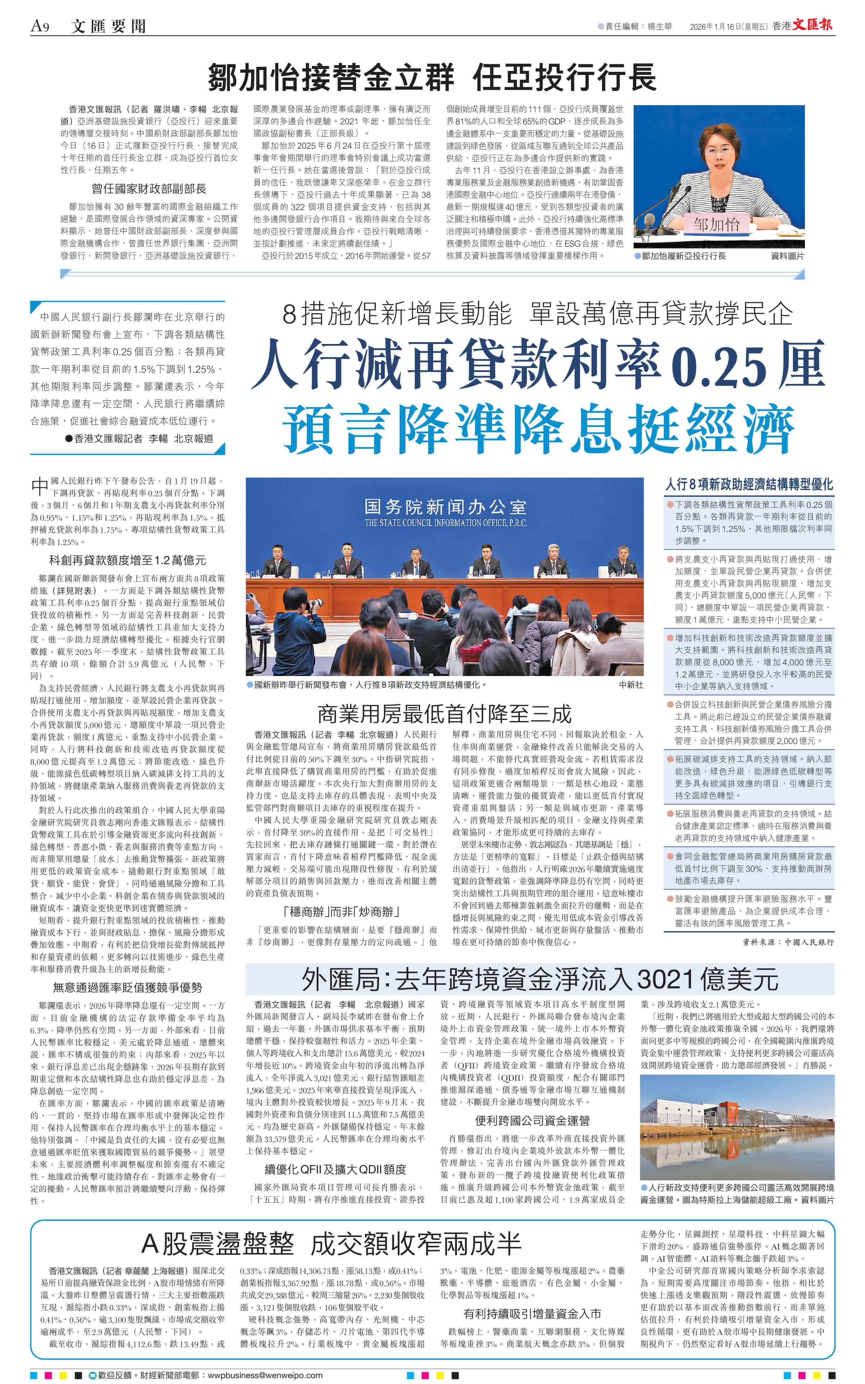 對於人行此次推出的政策組合,中國人民大學重陽金融研究院研究員敦志剛向香港文匯報表示,結構性貨幣政策工具在於引導金融資源更多流向科技創新、綠色轉型、普惠小微、養老與服務消費等重點方向,而非簡單用總量「放水」去推動貨幣擴張。新政策將用更低的政策資金成本,撬動銀行對重點領域「敢貸、願貸、能貸、會貸」,同時通過風險分擔和工具整合,減少中小企業、科創企業在債券與貸款領域的融資成本,讓資金更快更準到達實體經濟。