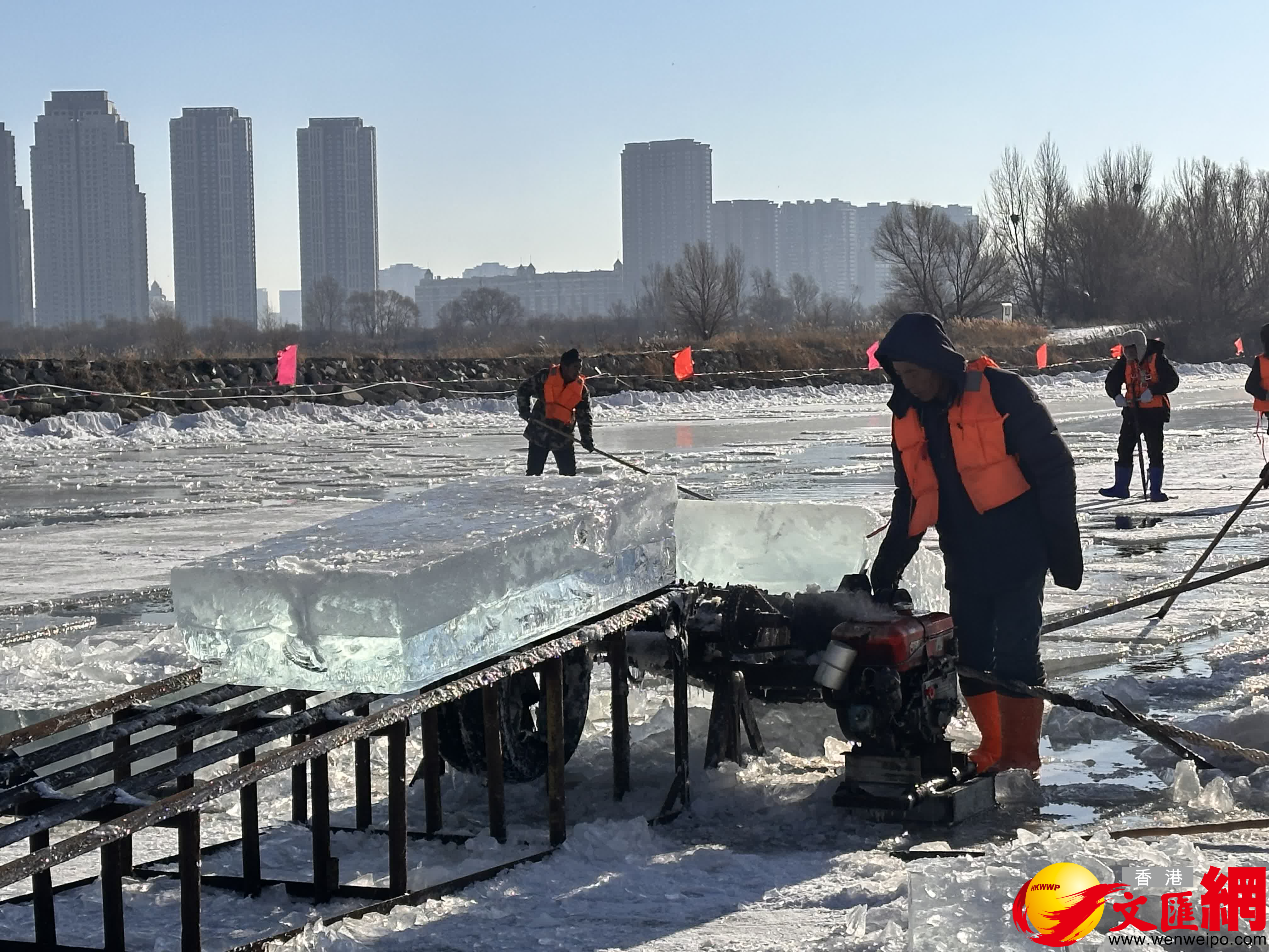 近日,哈爾濱的氣溫更低了些。但清晨的第一縷陽光鋪灑在千里冰封的松花江,江面已是一派熱火朝天的採冰景象。「馬上就要到大寒了,雖然天氣冷,採冰工人需要更加做好防寒保暖,但這個時候採出來的冰也是厚度最大,潔凈度最高的。」採冰的冰把頭介紹着。