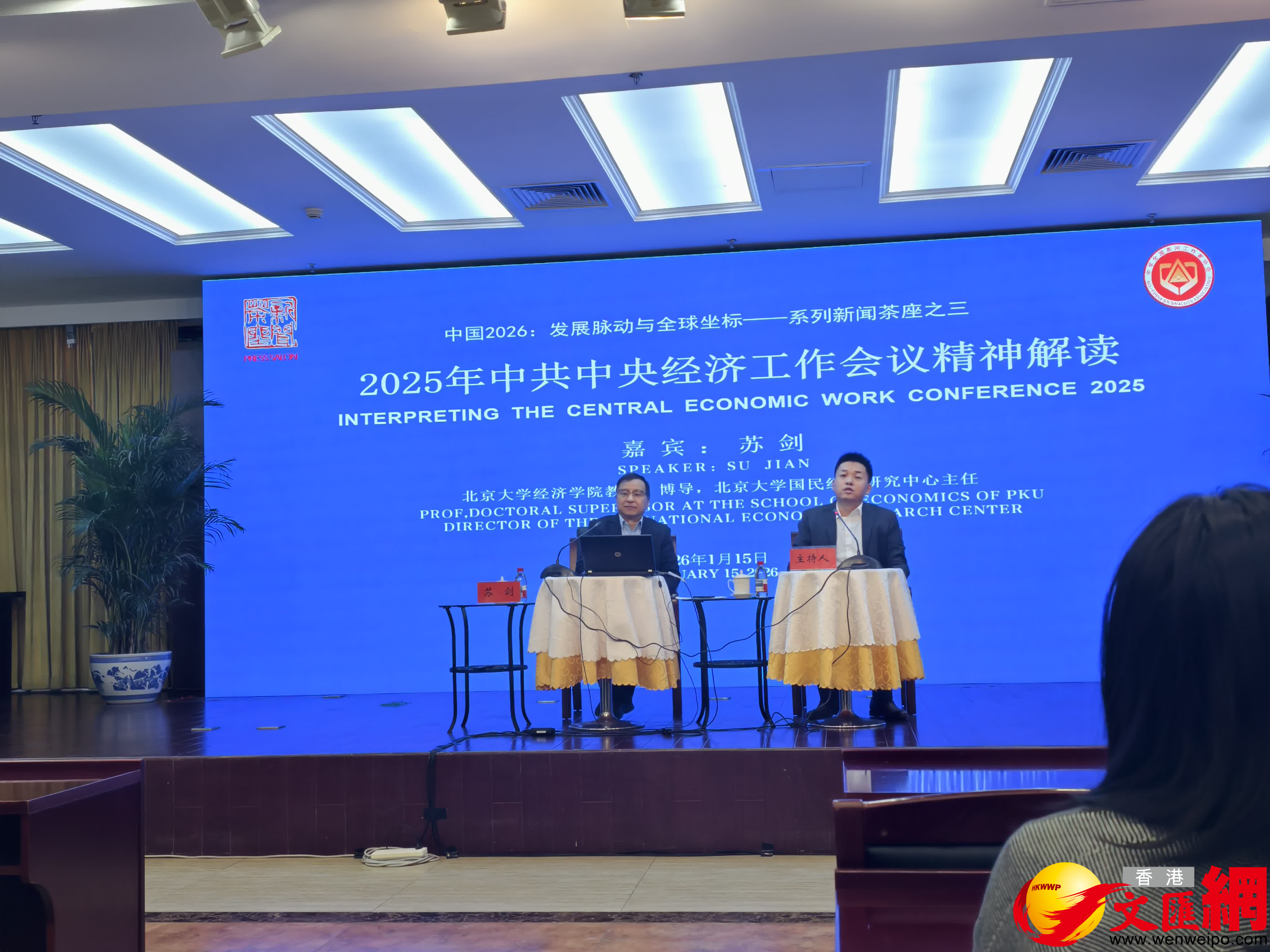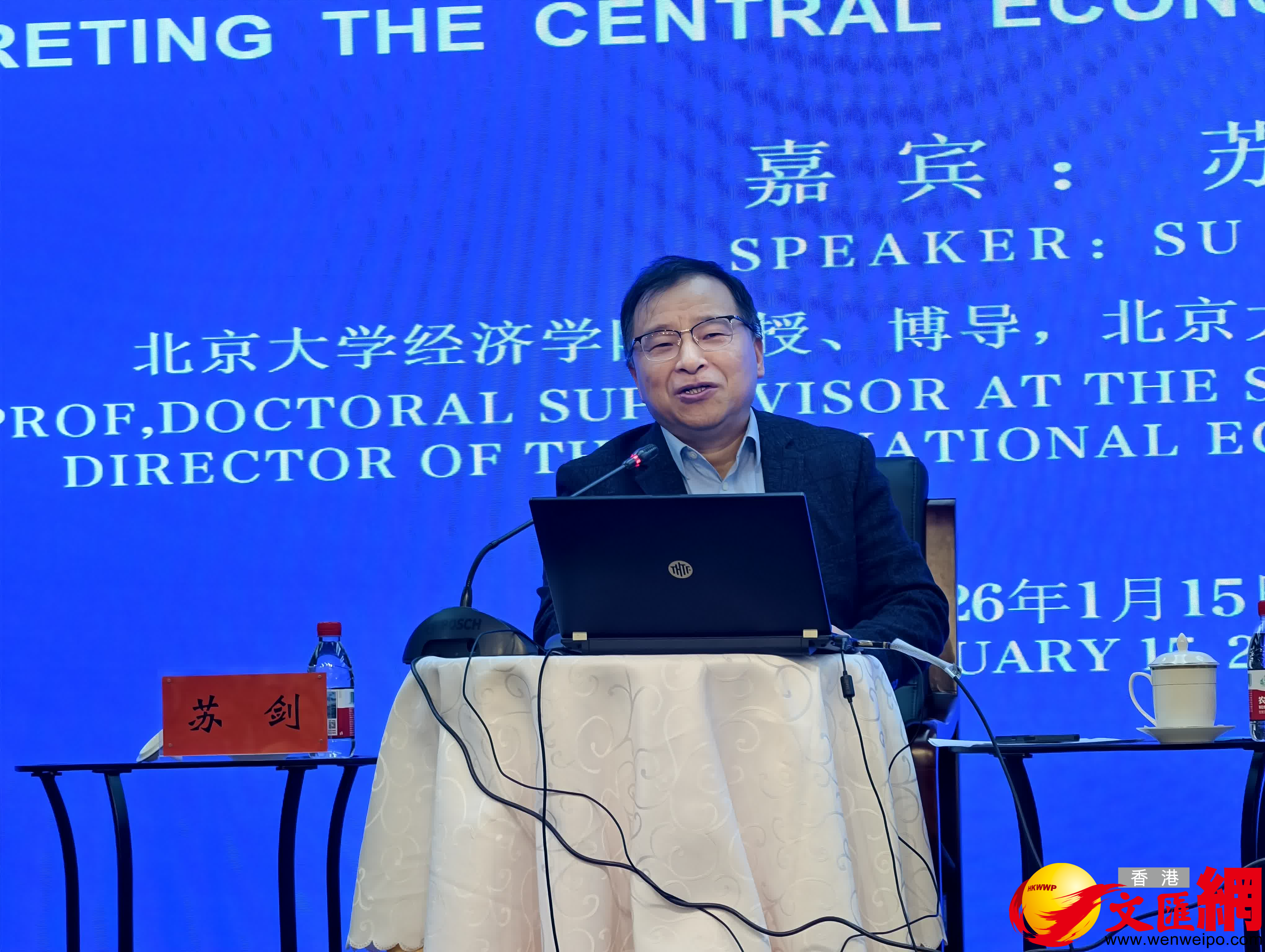 (香港文匯網記者 任芳頡)北京大學經濟學院教授、北京大學國民經濟研究中心主任蘇劍15日在中國記協新聞茶座上指出,2026年作為「十五五」規劃開局之年,宏觀經濟需置於中長期發展框架下考量,預計GDP增長目標仍將保持5%左右。他提到,2026年擴內需力度將進一步加大,促消費有望取得良好效果,重點發力服務消費與電子消費領域。對於房地產行業,他強調,行業將進入結構性調整階段,但其作為支柱產業的屬性不會變,「未來能與房地產行業貢獻匹配的,就是調整後的房地產行業」。