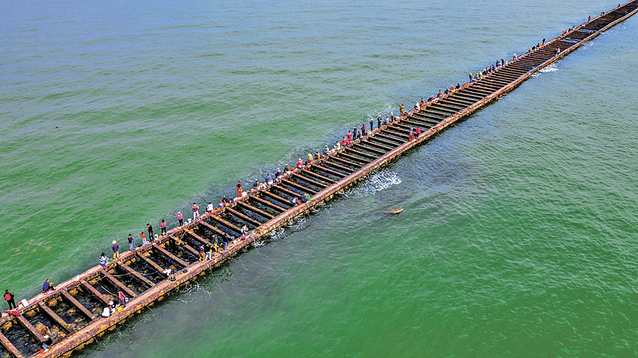 如今,曾是油田命脈的孤東海堤已成為東營旅遊的打卡點,網友稱其為被低估的海堤秘境。孤東海堤是鎮海鎖浪、保護油田勘探開發的圍海大堤,被譽為「海上長城」,全長17公里。遊客在這裏可以靜候海上日出、日落,還有「東觀渤海西賞油」的最佳觀景視角,背靠大海與磕頭機,工業風直接拉滿。