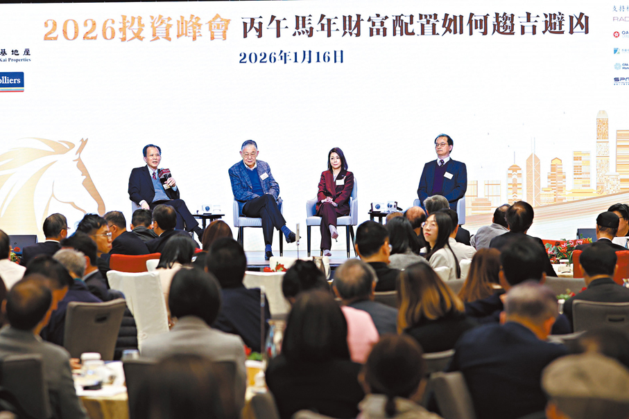 投資峰會邀請多位金融市場專家、學者深入剖析2026年的投資大勢,幫助大家在新一年布局財富,交流香港如何繼續穩中求進,樓市、股債和其他新機會。黃偉綸作為主禮嘉賓,他在論壇上指出,香港過去一年在不同經濟範疇都取得不俗的成績,認為這證明了儘管挑戰大,只要大家一起努力,開拓新市場、尋找新機遇、打造新增長空間,仍然可以找到頭上的一片藍天。
