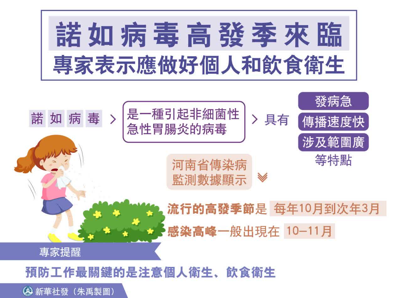 諾如病毒是導致急性胃腸炎的常見病原體,感染後常表現為嘔吐和腹瀉。廣東省疾控中心信息顯示,廣東省每年10月至次年3月為諾如病毒感染流行季,學校、託幼機構等是疫情發生和傳播的高風險場所。