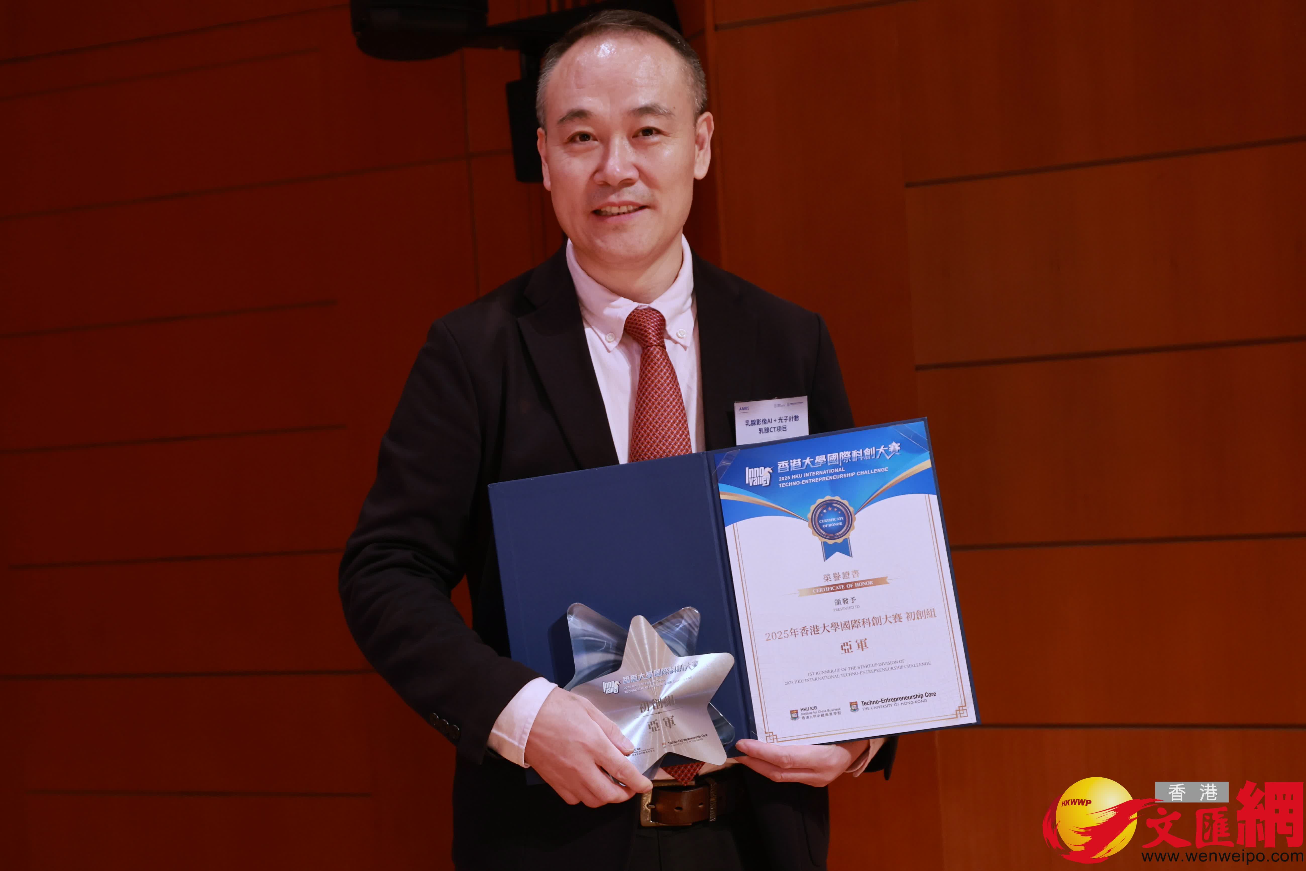 上午的初創組決賽已圓滿落幕,現場共頒發六項大獎:便攜式顱腦出血檢測分析儀項目表現亮眼,一舉包攬冠軍、及營銷卓越獎與知識產權獎三項獎項。乳腺影像AI+光子計數乳腺CT項目斬獲亞軍,比幹生物項目拿下季軍,雨生科技項目獲得ESG卓越獎。